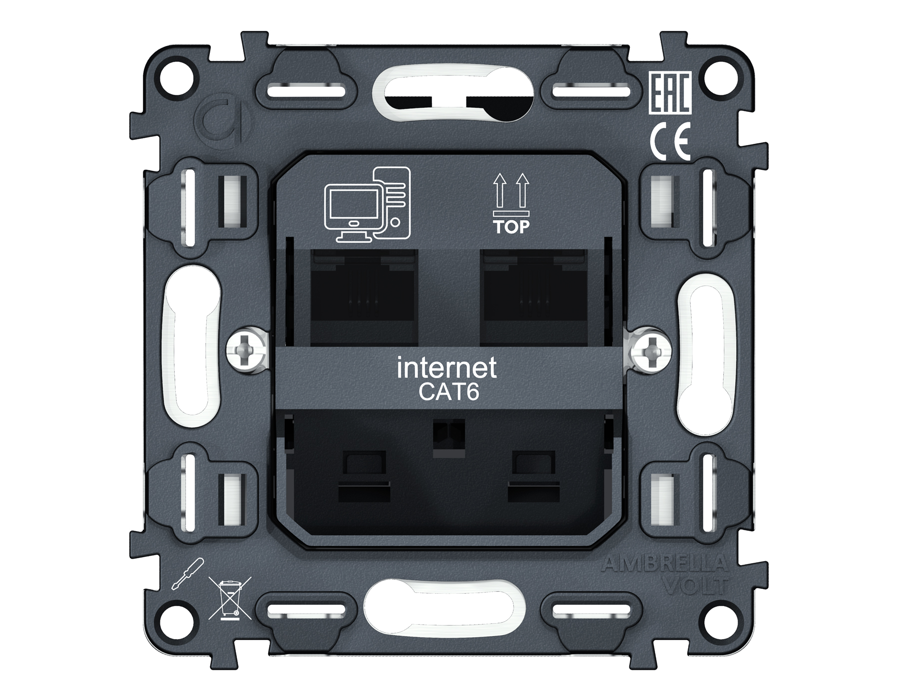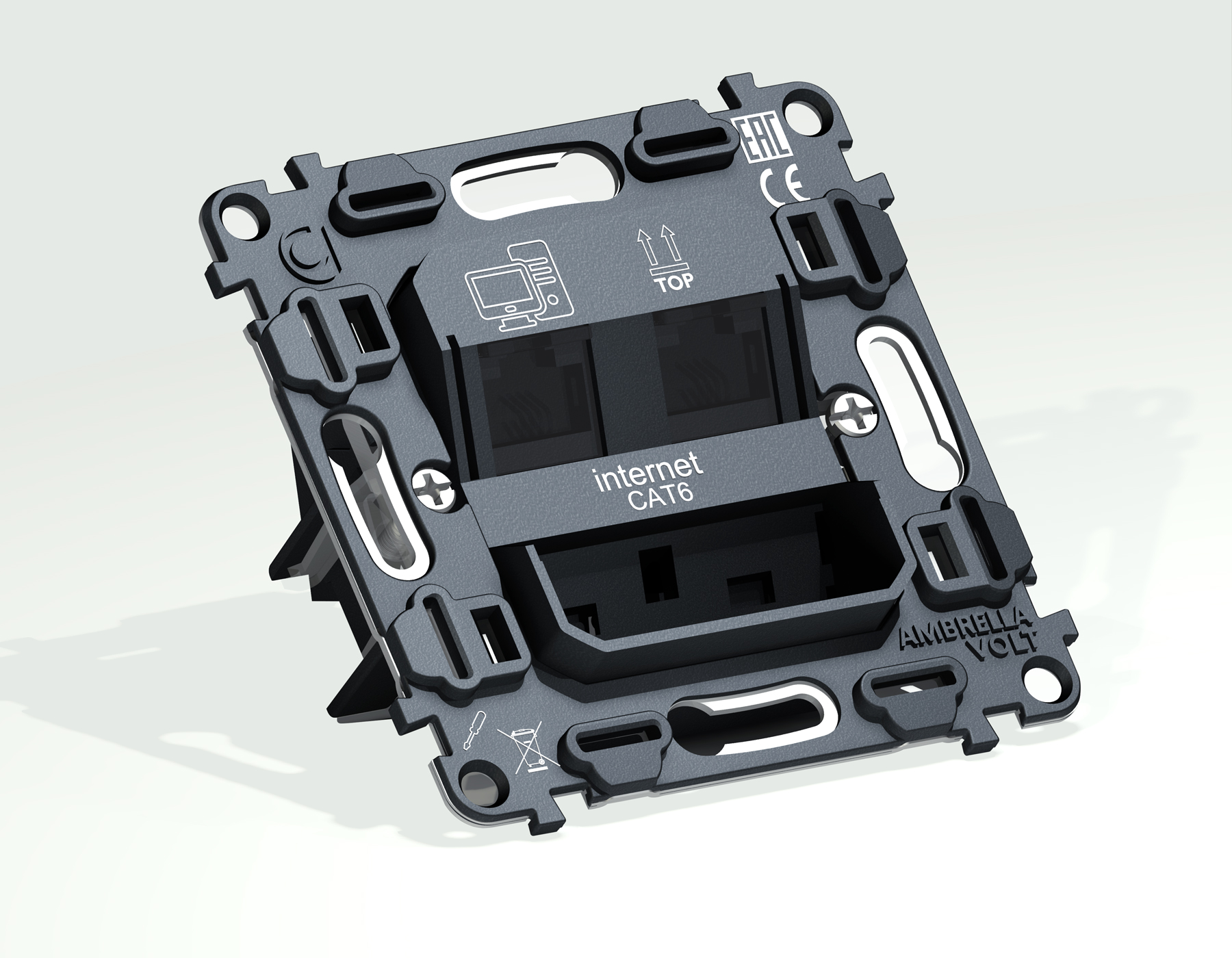 Многогранный ассортимент Ambrella Volt включает в себя механизмы, лицевые панели и рамки, а также комплекты, доступные в различных цветовых решениях. Продукция представлена в модульном исполнении, что позволяет гибко настраивать внешнийвид и функциональность. Вам будет легко заменить лицевую панель, рамку или механизм, найдя идеальное сочетание цветов.