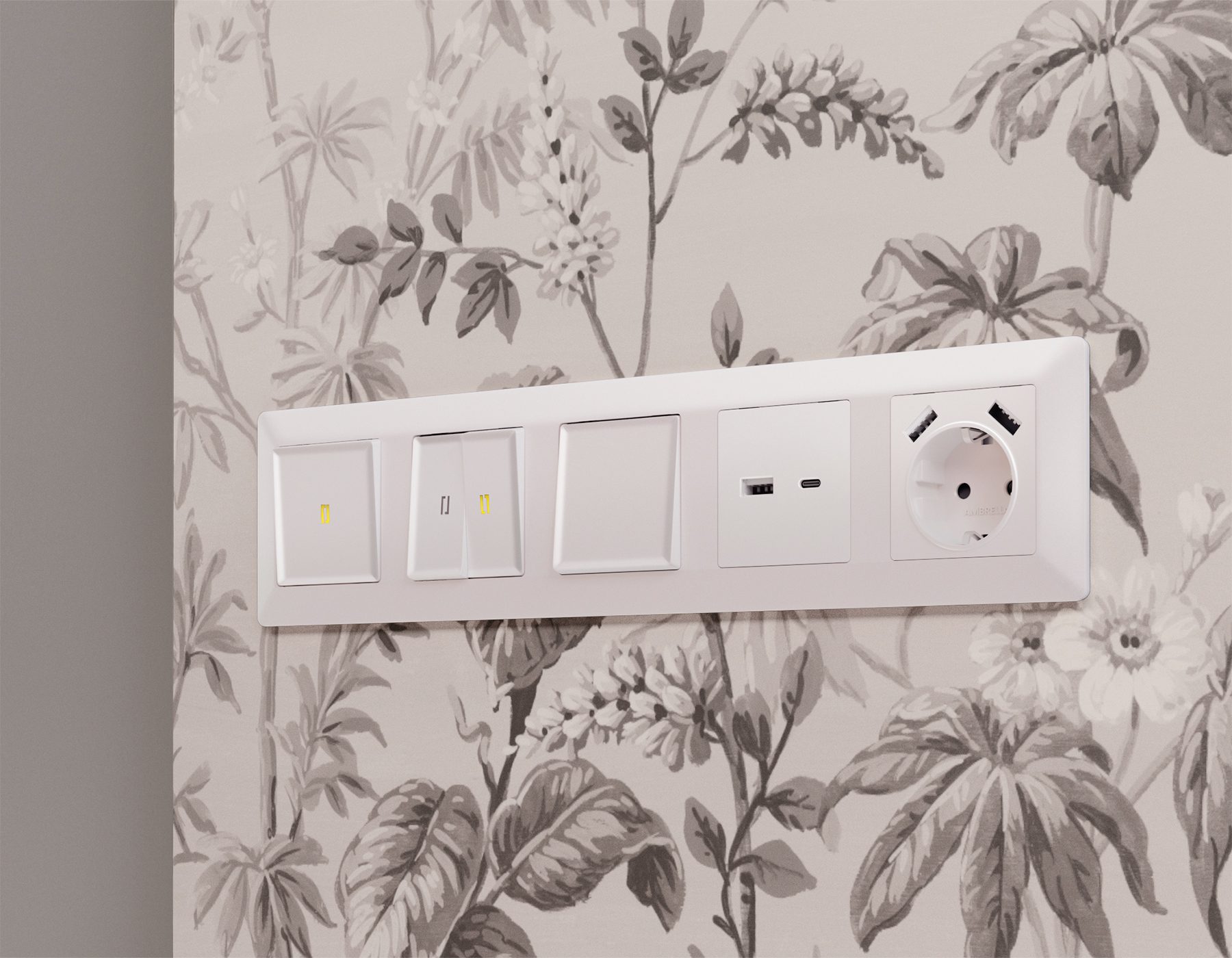 Многогранный ассортимент Ambrella Volt включает в себя механизмы, лицевые панели и рамки, а также комплекты, доступные в различных цветовых решениях. Продукция представлена в модульном исполнении, что позволяет гибко настраивать внешнийвид и функциональность. Вам будет легко заменить лицевую панель, рамку или механизм, найдя идеальное сочетание цветов.