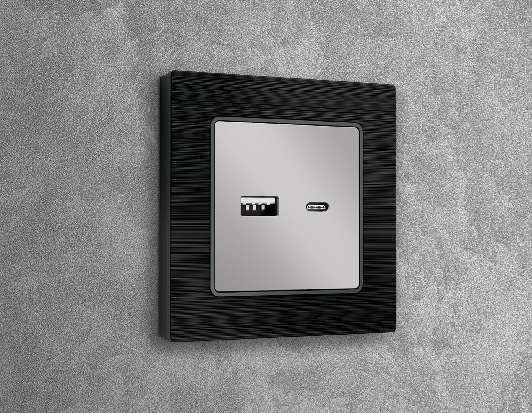 Лицевая панель ALFA для розетки 2USB тип A+C QUANT