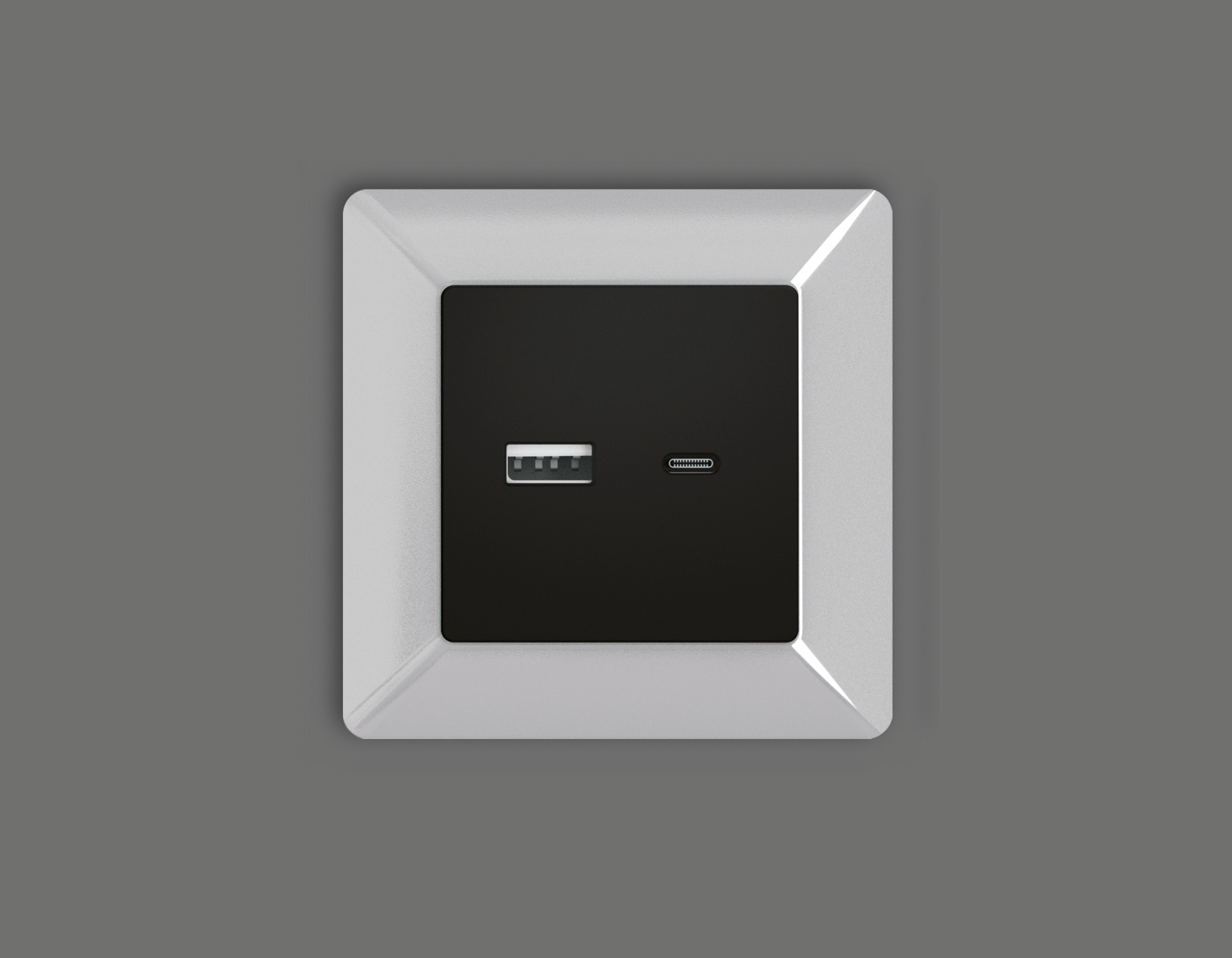 Лицевая панель ALFA (Черный матовый) для розетки 2USB тип A+C QUANT AP8110