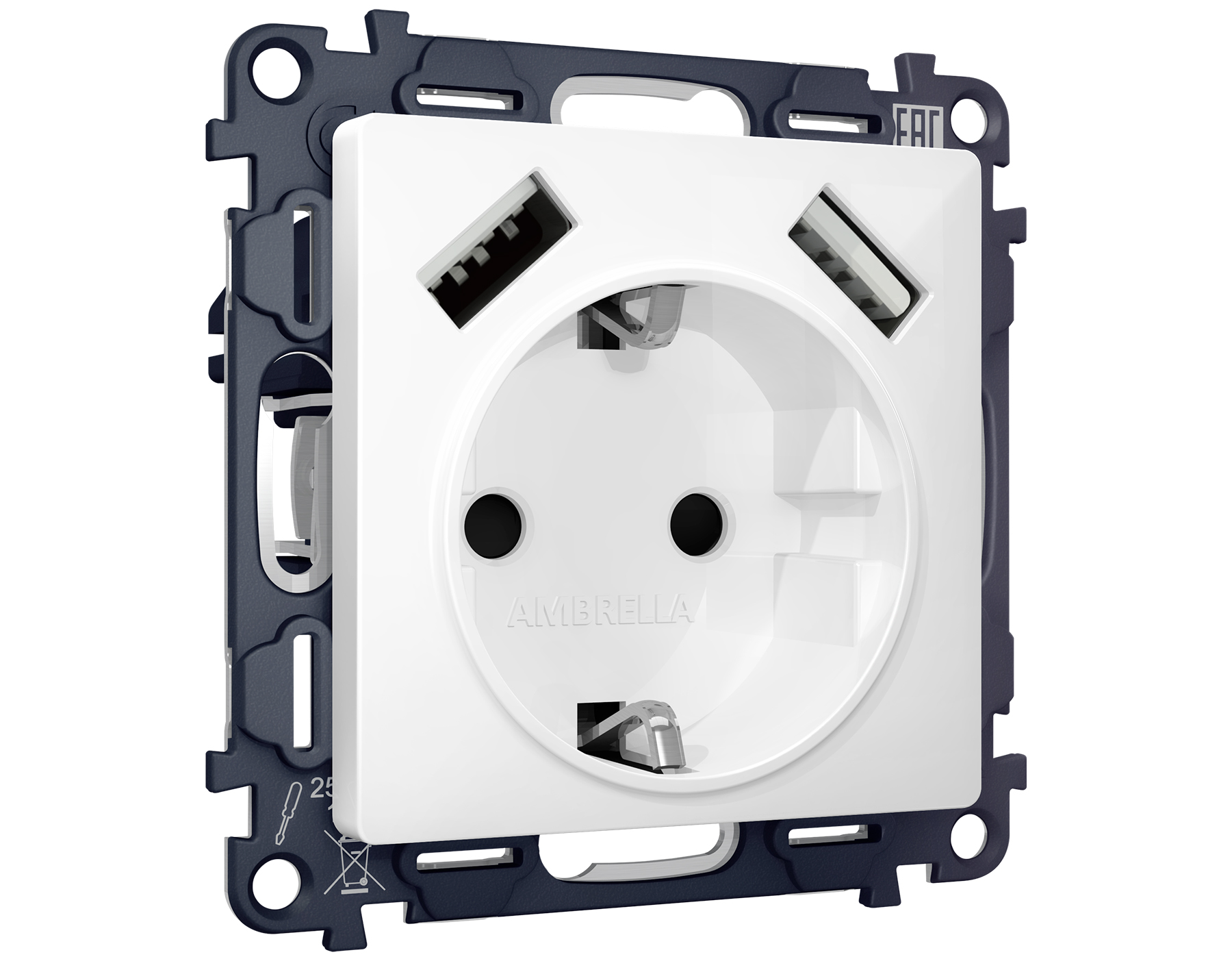Комплект механизма электрической розетки ALFA MA109010 Белый глянец 2USB A+A 18W быстрая зарядка с заземлением и шторками 2P+E 16A-250V QUANT