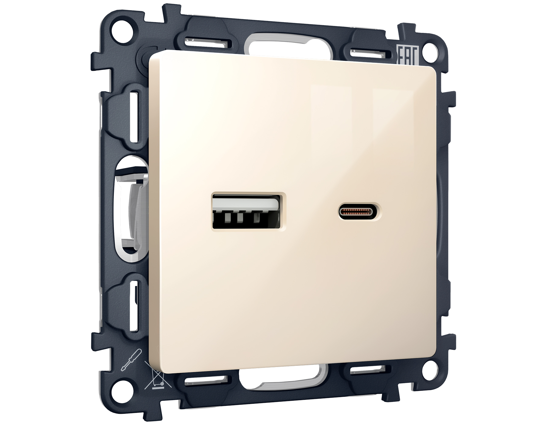 Комплект механизма розетки ALFA MA311010 Бежевый глянец 2USB A+C 20W быстрая зарядка QUANT