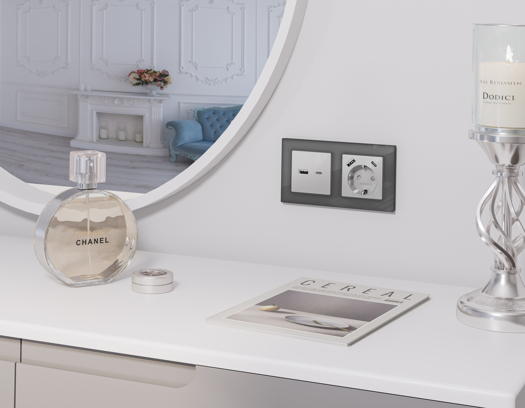 Многогранный ассортимент Ambrella Volt включает в себя механизмы, лицевые панели и рамки, а также комплекты, доступные в различных цветовых решениях. Продукция представлена в модульном исполнении, что позволяет гибко настраивать внешнийвид и функциональность. Вам будет легко заменить лицевую панель, рамку или механизм, найдя идеальное сочетание цветов.