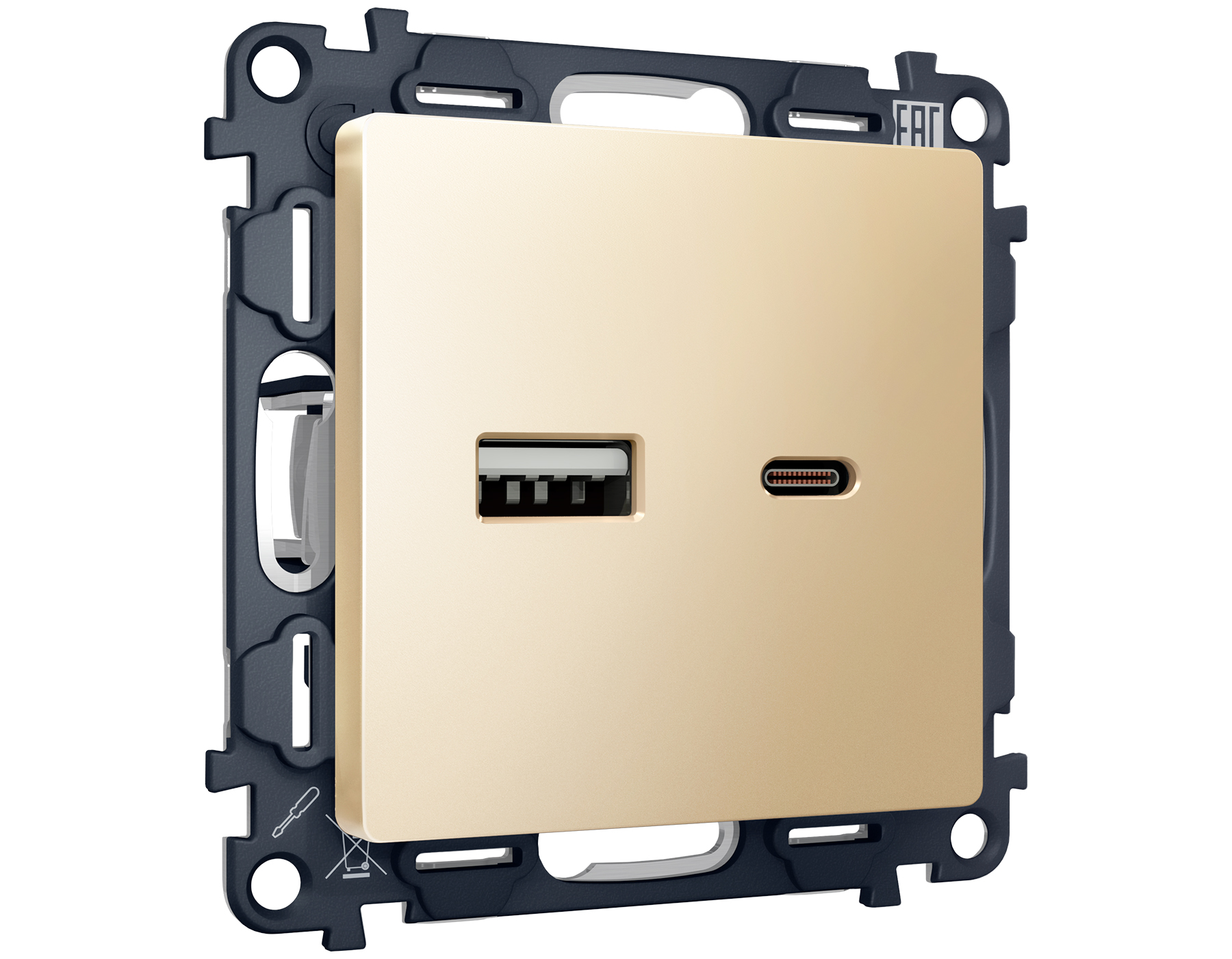 Комплект механизма розетки ALFA MA611010 Шампань 2USB A+C 20W быстрая зарядка QUANT