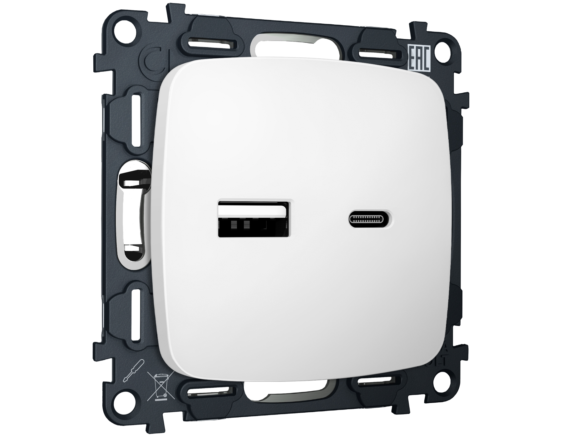 Комплект механизма розетки OMEGA MO131010 Белый матовый 2USB A+C 20W быстрая зарядка QUANT