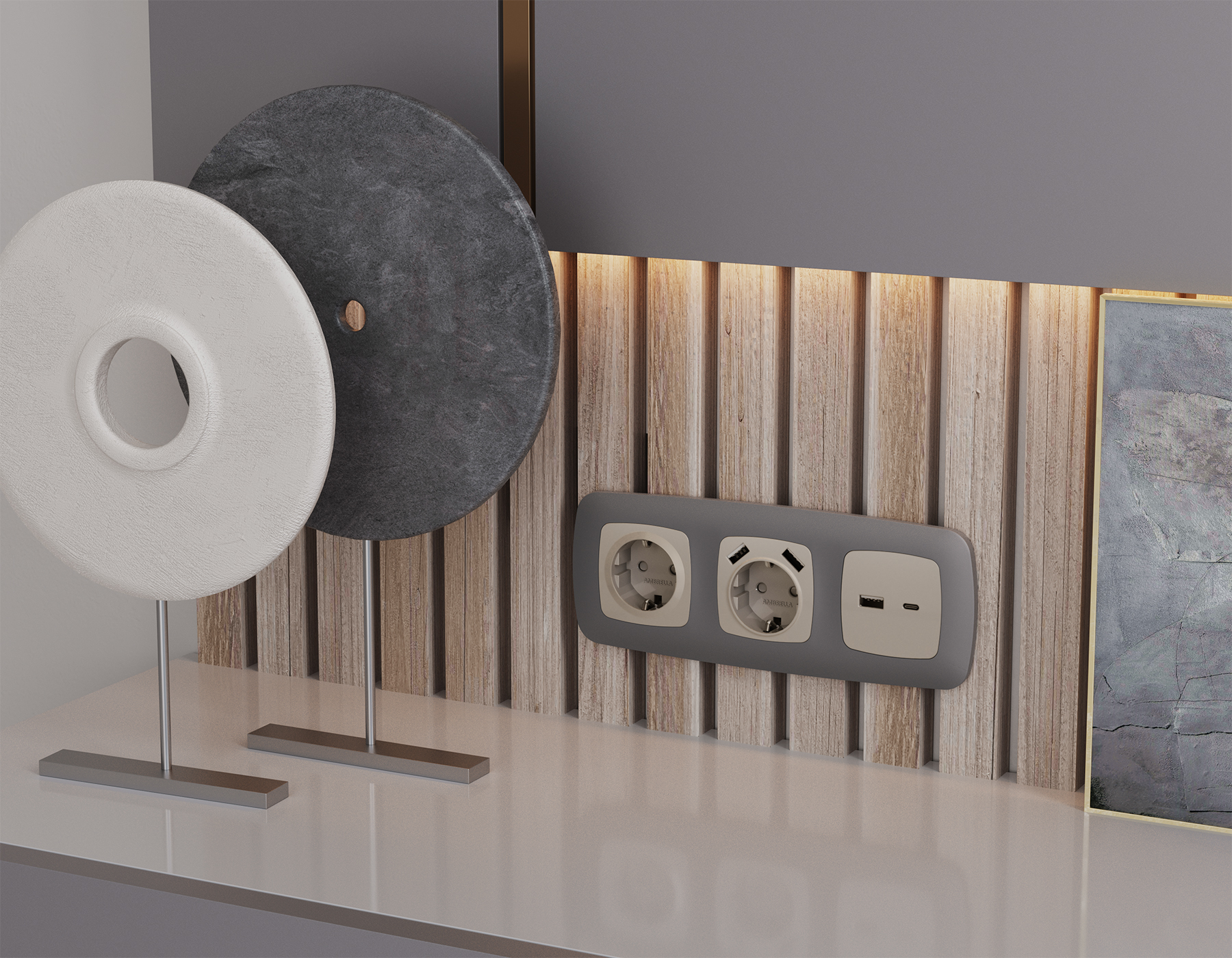 Многогранный ассортимент Ambrella Volt включает в себя механизмы, лицевые панели и рамки, а также комплекты, доступные в различных цветовых решениях. Продукция представлена в модульном исполнении, что позволяет гибко настраивать внешнийвид и функциональность. Вам будет легко заменить лицевую панель, рамку или механизм, найдя идеальное сочетание цветов.