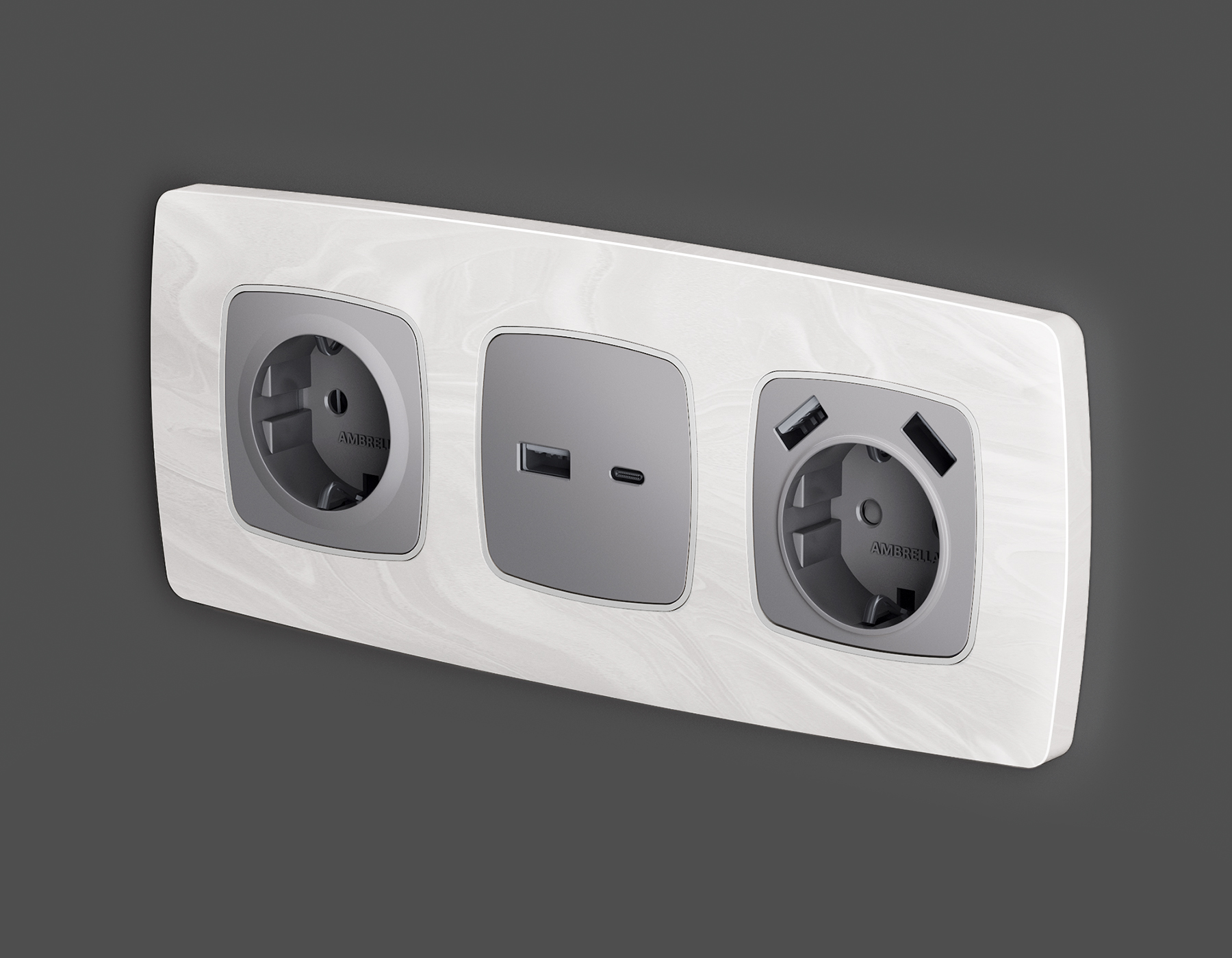 Многогранный ассортимент Ambrella Volt включает в себя механизмы, лицевые панели и рамки, а также комплекты, доступные в различных цветовых решениях. Продукция представлена в модульном исполнении, что позволяет гибко настраивать внешнийвид и функциональность. Вам будет легко заменить лицевую панель, рамку или механизм, найдя идеальное сочетание цветов.