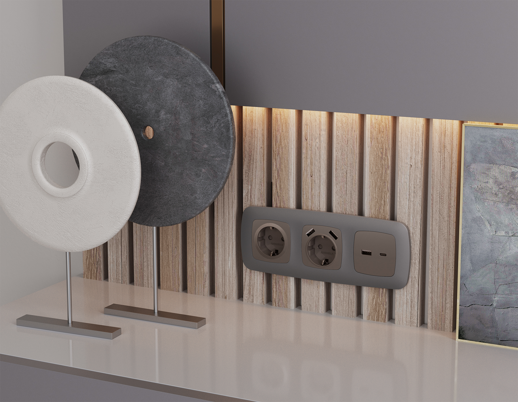 Многогранный ассортимент Ambrella Volt включает в себя механизмы, лицевые панели и рамки, а также комплекты, доступные в различных цветовых решениях. Продукция представлена в модульном исполнении, что позволяет гибко настраивать внешнийвид и функциональность. Вам будет легко заменить лицевую панель, рамку или механизм, найдя идеальное сочетание цветов.