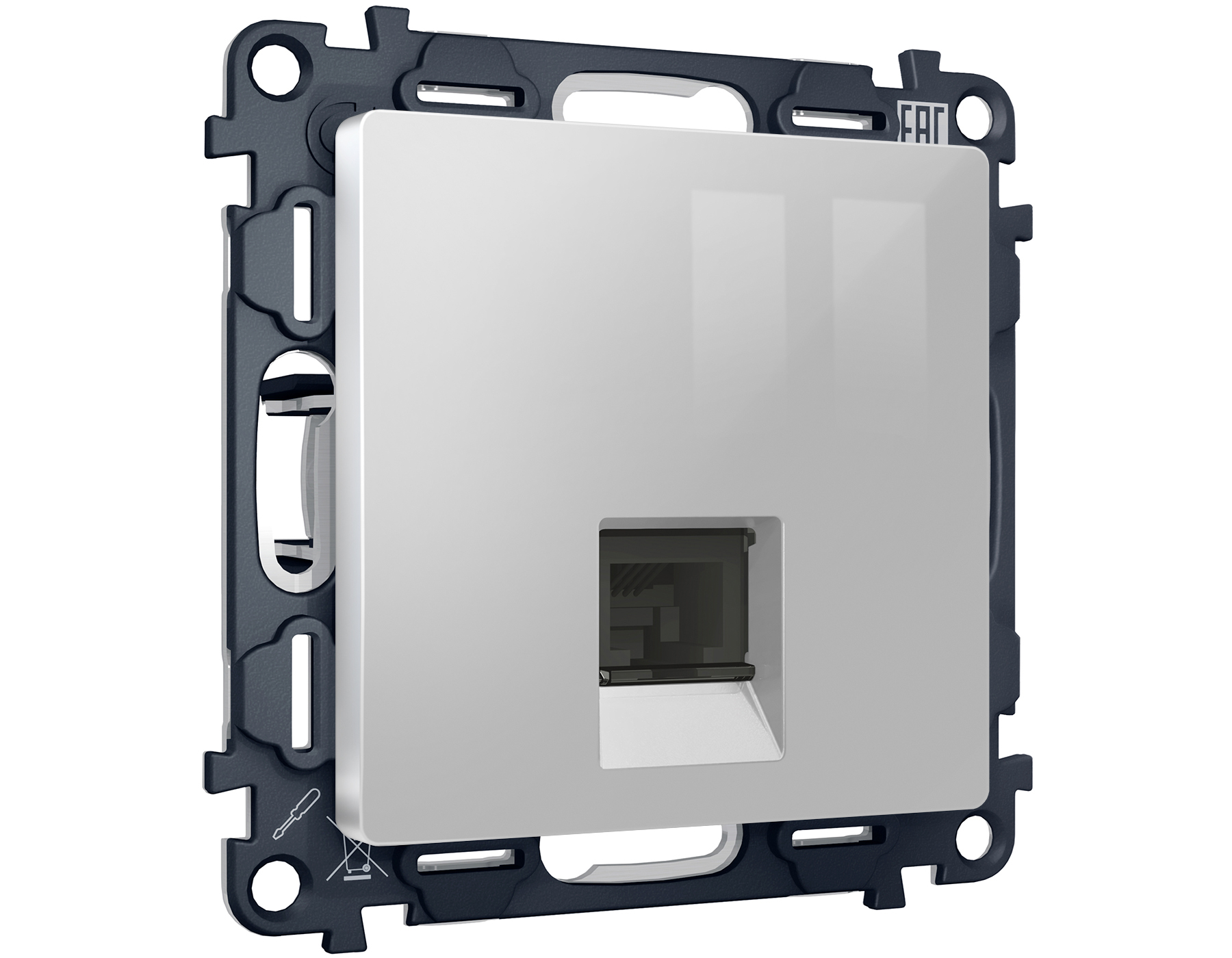 Комплект механизма телефонной розетки ALFA MA412030 Серебро глянец RJ-11(4P4C) с защитной шторкой QUANT