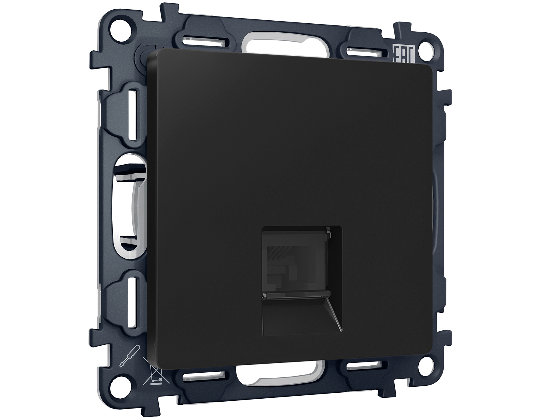 Комплект механизма телефонной розетки ALFA MA812030 Черный матовый RJ-11(4P4C) с защитной шторкой QUANT