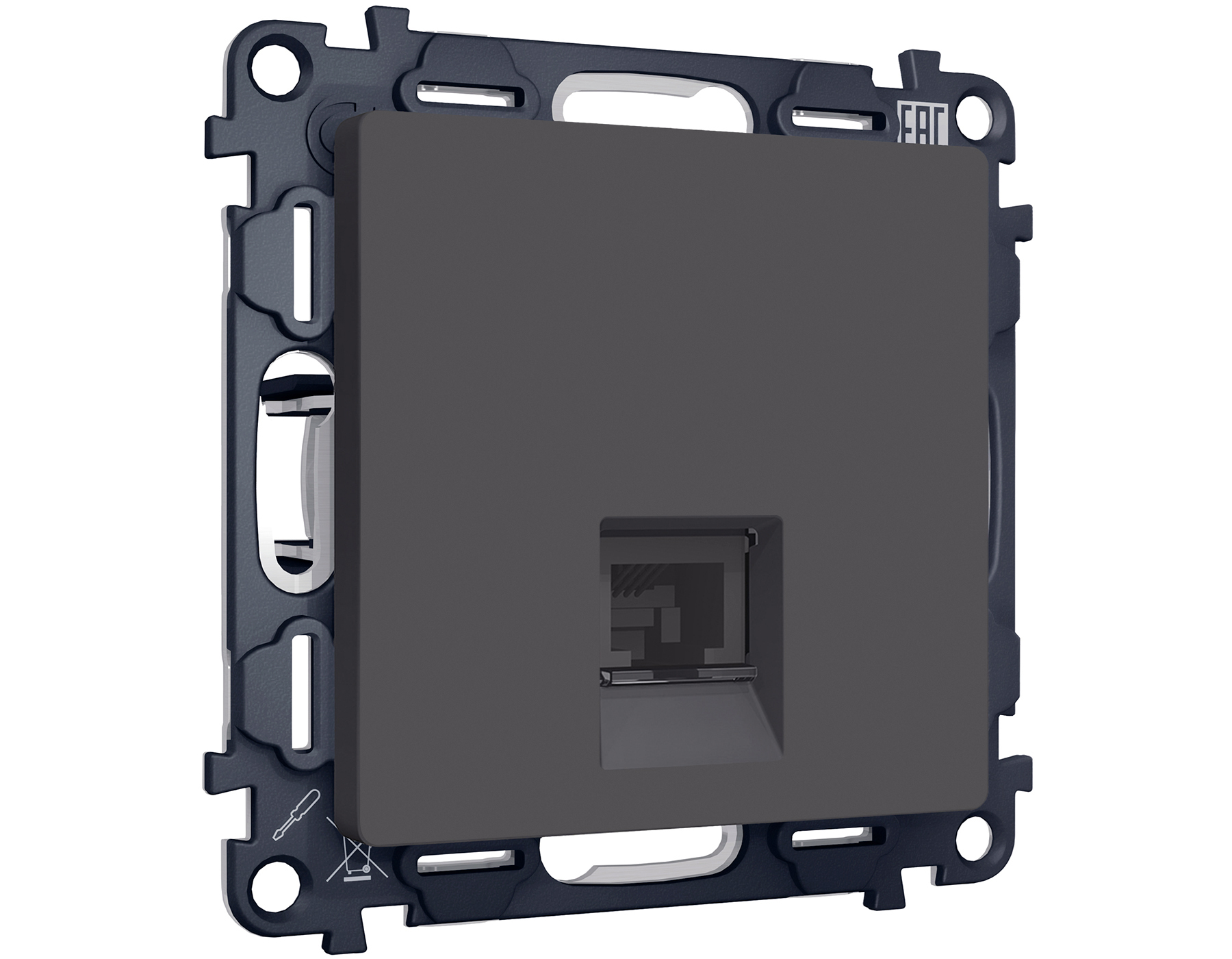 Комплект механизма телефонной розетки ALFA MA912030 Графит мягкое касание RJ-11(4P4C) с защитной шторкой QUANT