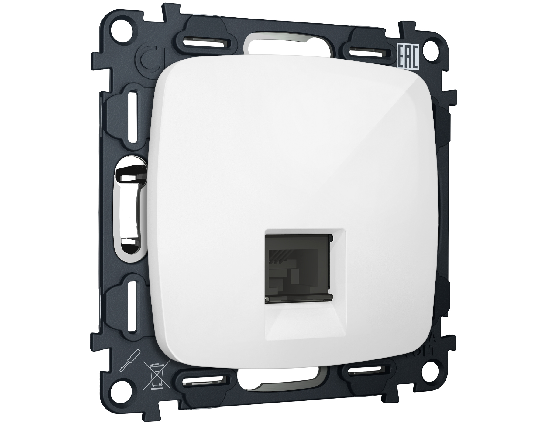 Комплект механизма телефонной розетки OMEGA MO112030 Белый глянец RJ-11(4P4C) с защитной шторкой QUANT