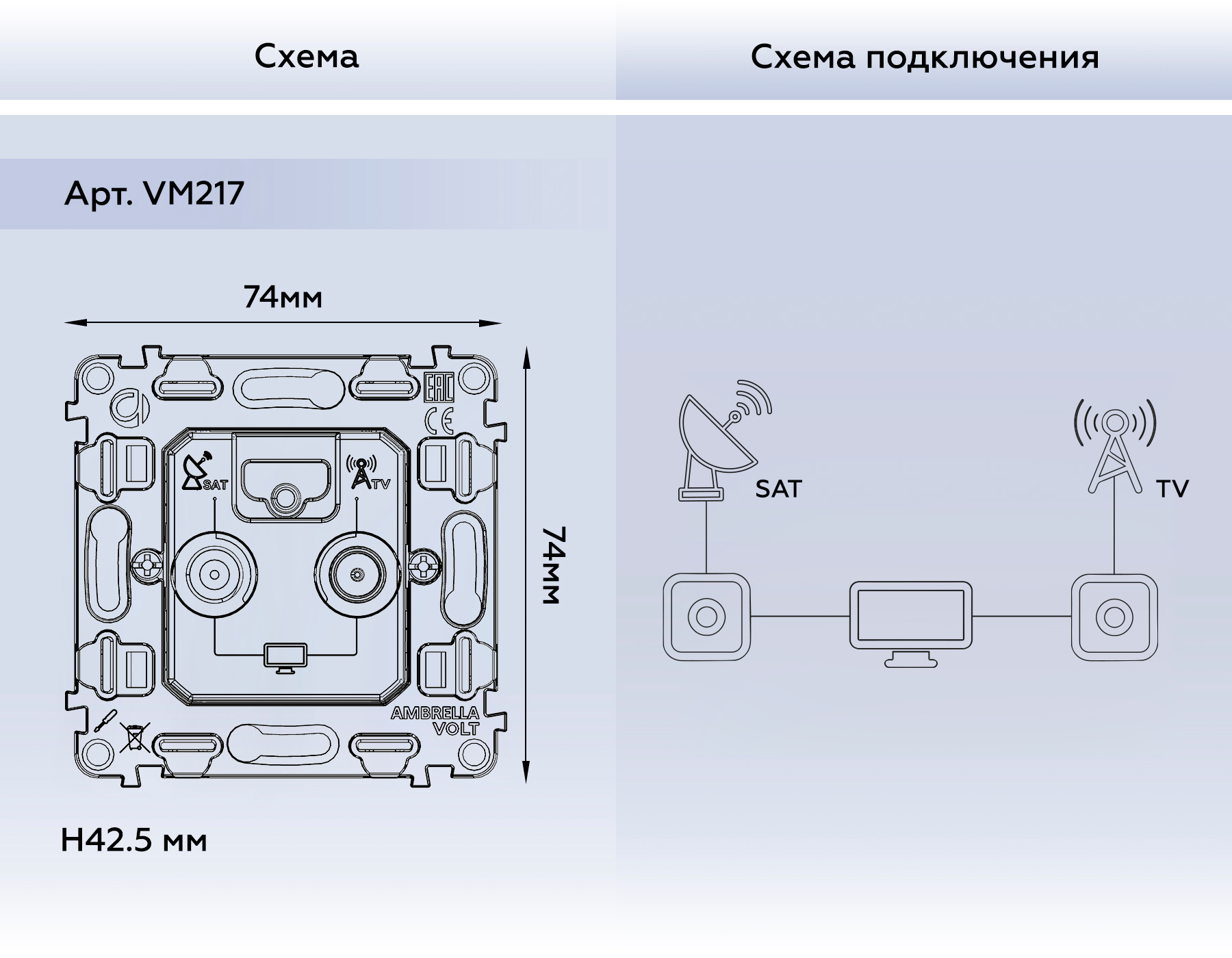 Механизм розетки TV оконечной + SAT 5-862MHz 3.5dB/950-2150MHz 3.8dB QUANT VM217