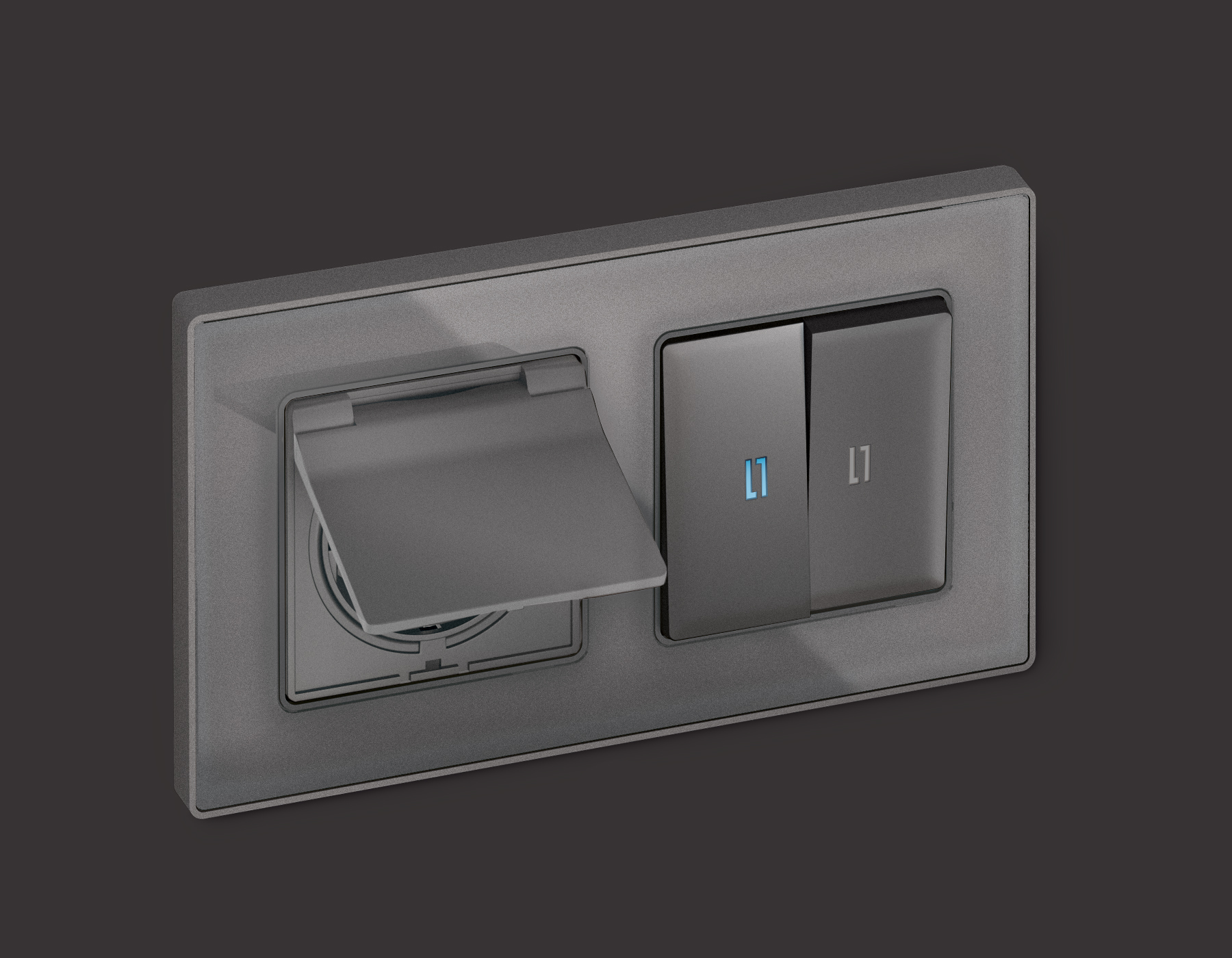 Лицевая панель ALFA (Антрацит серый) для электрической розетки с заземлением со шторками и крышкой IP44 QUANT AP6580