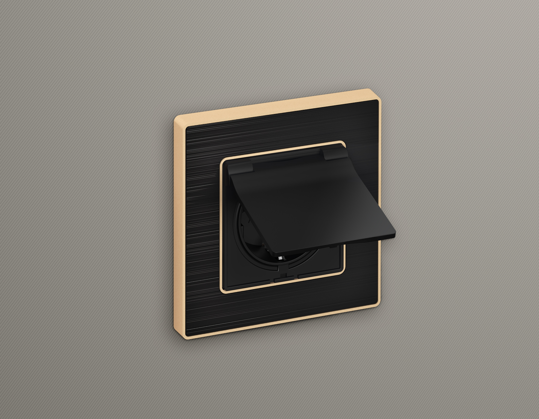 Лицевая панель ALFA (Черный матовый) для электрической розетки с заземлением со шторками и крышкой IP44 QUANT AP8080