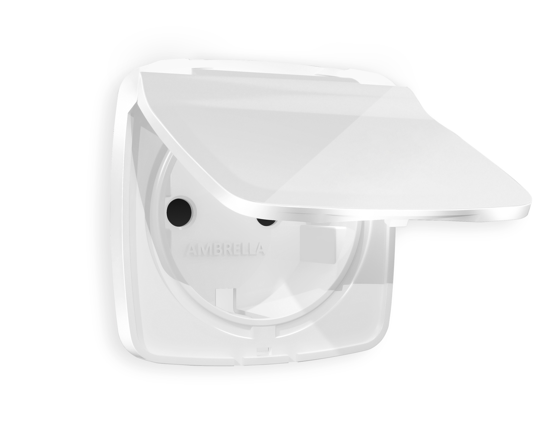 Лицевая панель OMEGA (Белый глянец) для розетки с заземлением со шторками и крышкой IP44 QUANT
