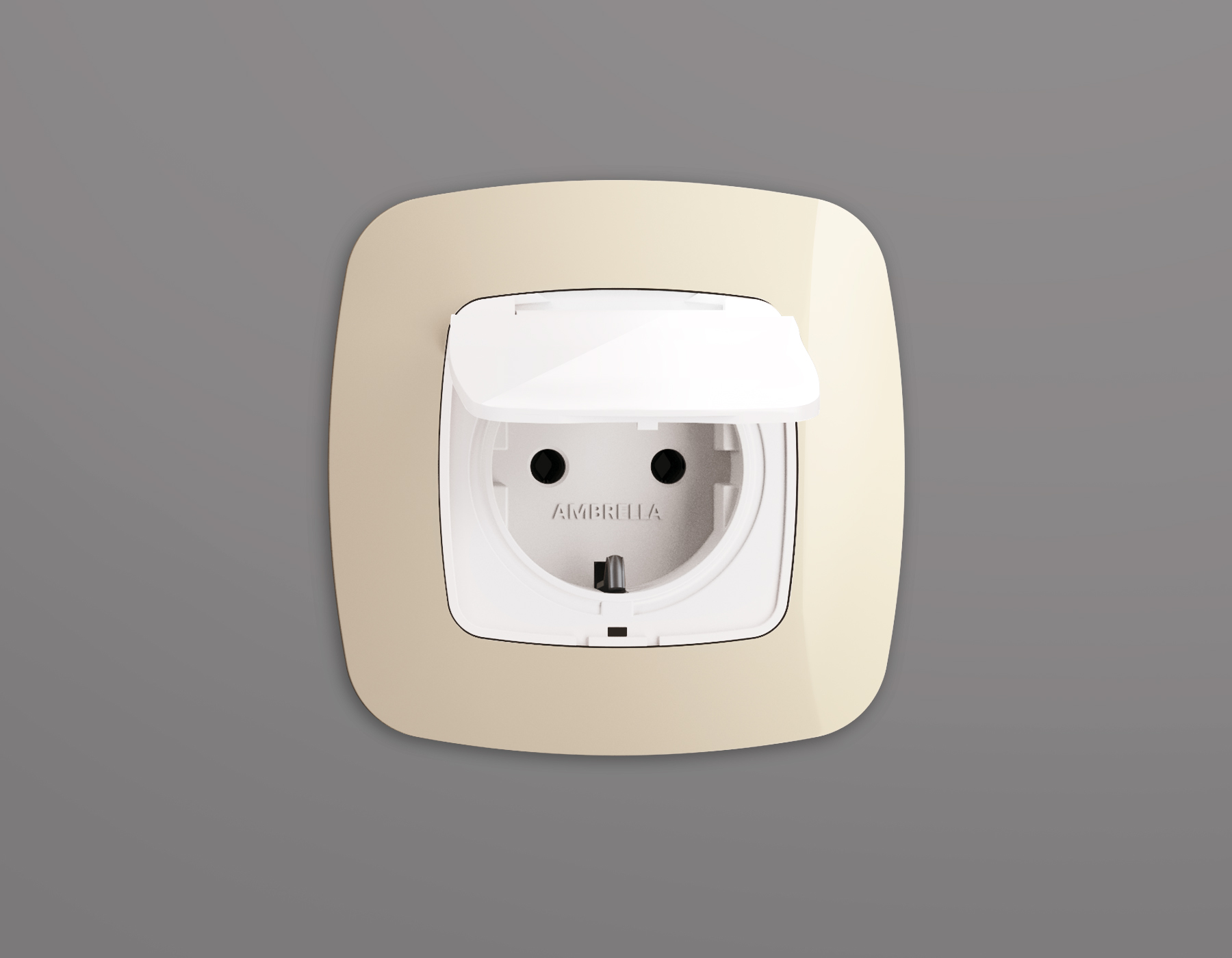 Лицевая панель OMEGA для электрической розетки с заземлением со шторками и защитной крышкой IP44 QUANT