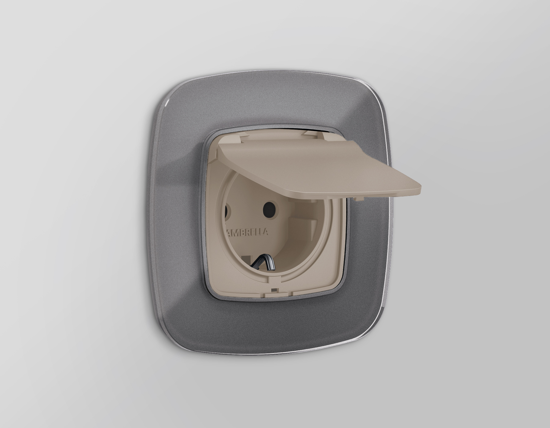 Лицевая панель OMEGA (Серо-бежевый матовый) для электрической розетки с/з со шторками и крышкой IP44 QUANT OP3680