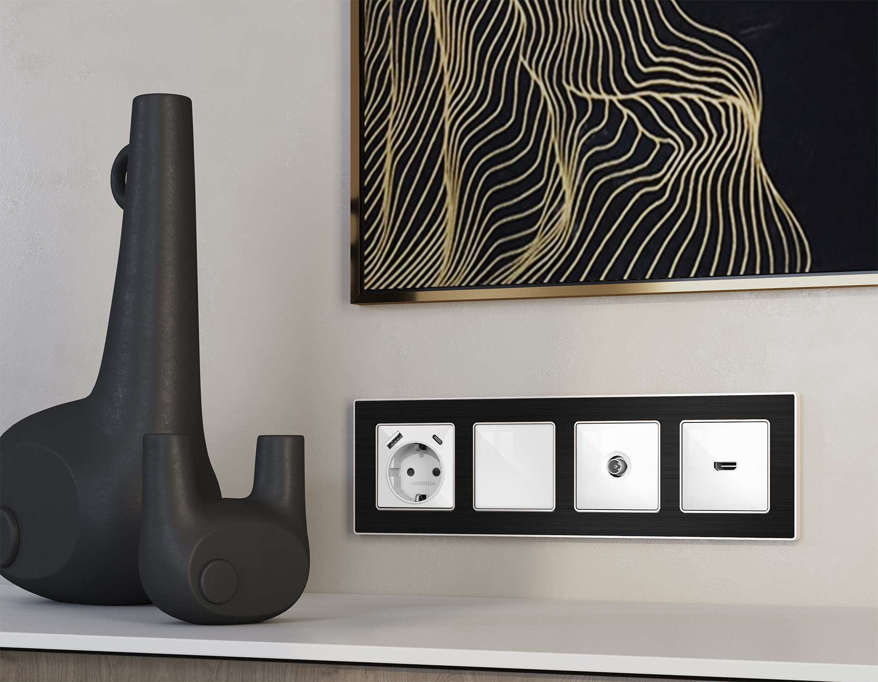 Многогранный ассортимент Ambrella Volt включает в себя механизмы, лицевые панели и рамки, а также комплекты, доступные в различных цветовых решениях. Продукция представлена в модульном исполнении, что позволяет гибко настраивать внешнийвид и функциональность. Вам будет легко заменить лицевую панель, рамку или механизм, найдя идеальное сочетание цветов.