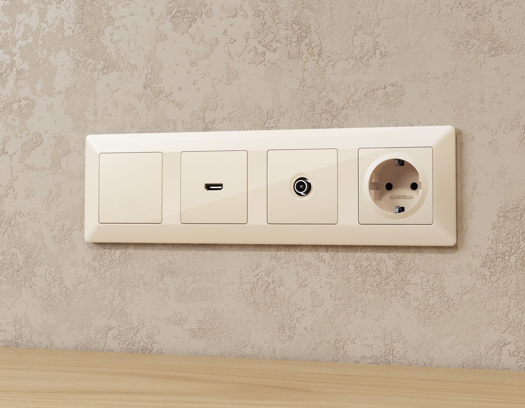 Многогранный ассортимент Ambrella Volt включает в себя механизмы, лицевые панели и рамки, а также комплекты, доступные в различных цветовых решениях. Продукция представлена в модульном исполнении, что позволяет гибко настраивать внешнийвид и функциональность. Вам будет легко заменить лицевую панель, рамку или механизм, найдя идеальное сочетание цветов.