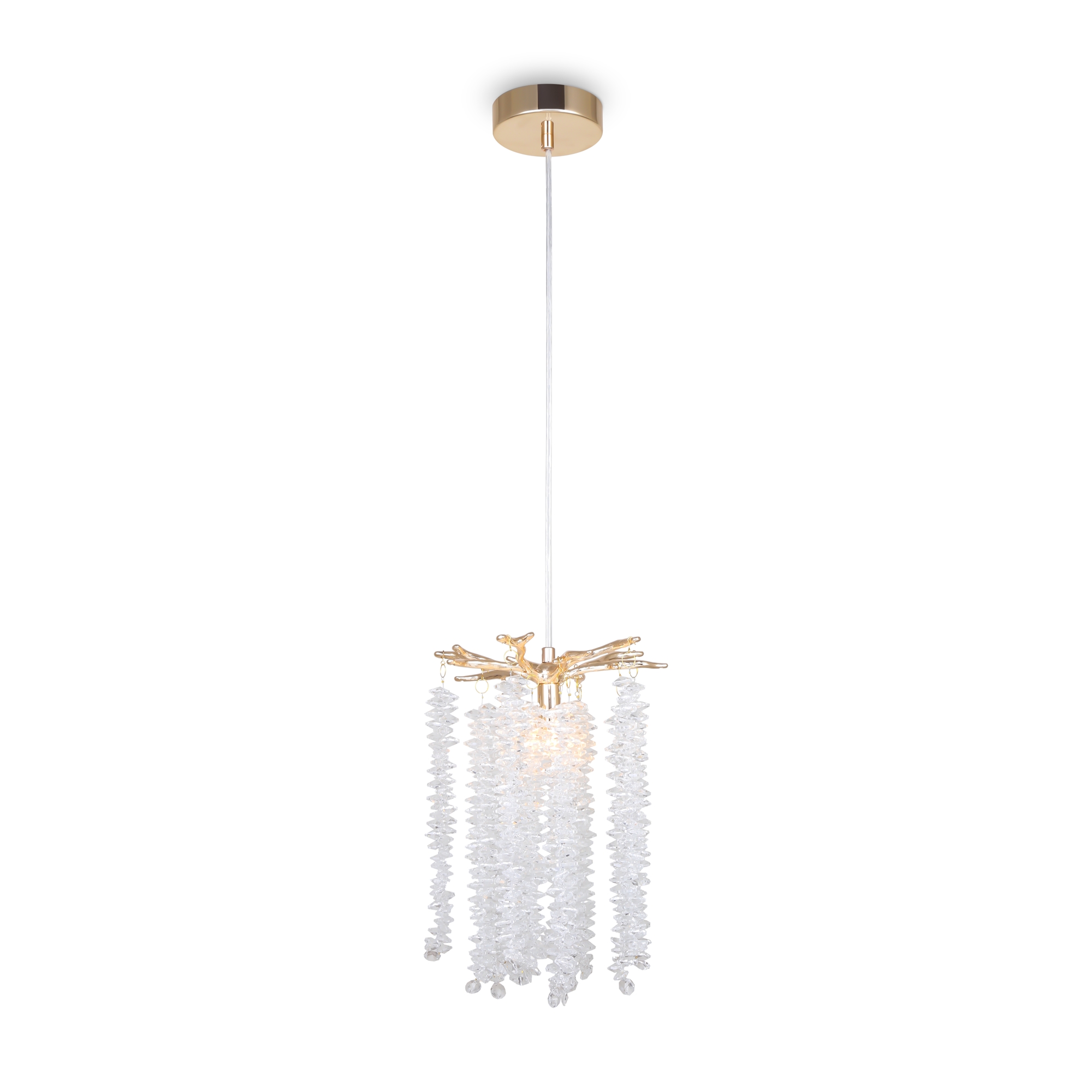 Материалы арматуры —металл, цвет — золото. Хрустальные декоративные элементы напоминают капельки - создают глубокие переливы света. Дизайн в трендовой растительной тематике. Источник света — лампа с цоколем G9 и с поворотной функцией.