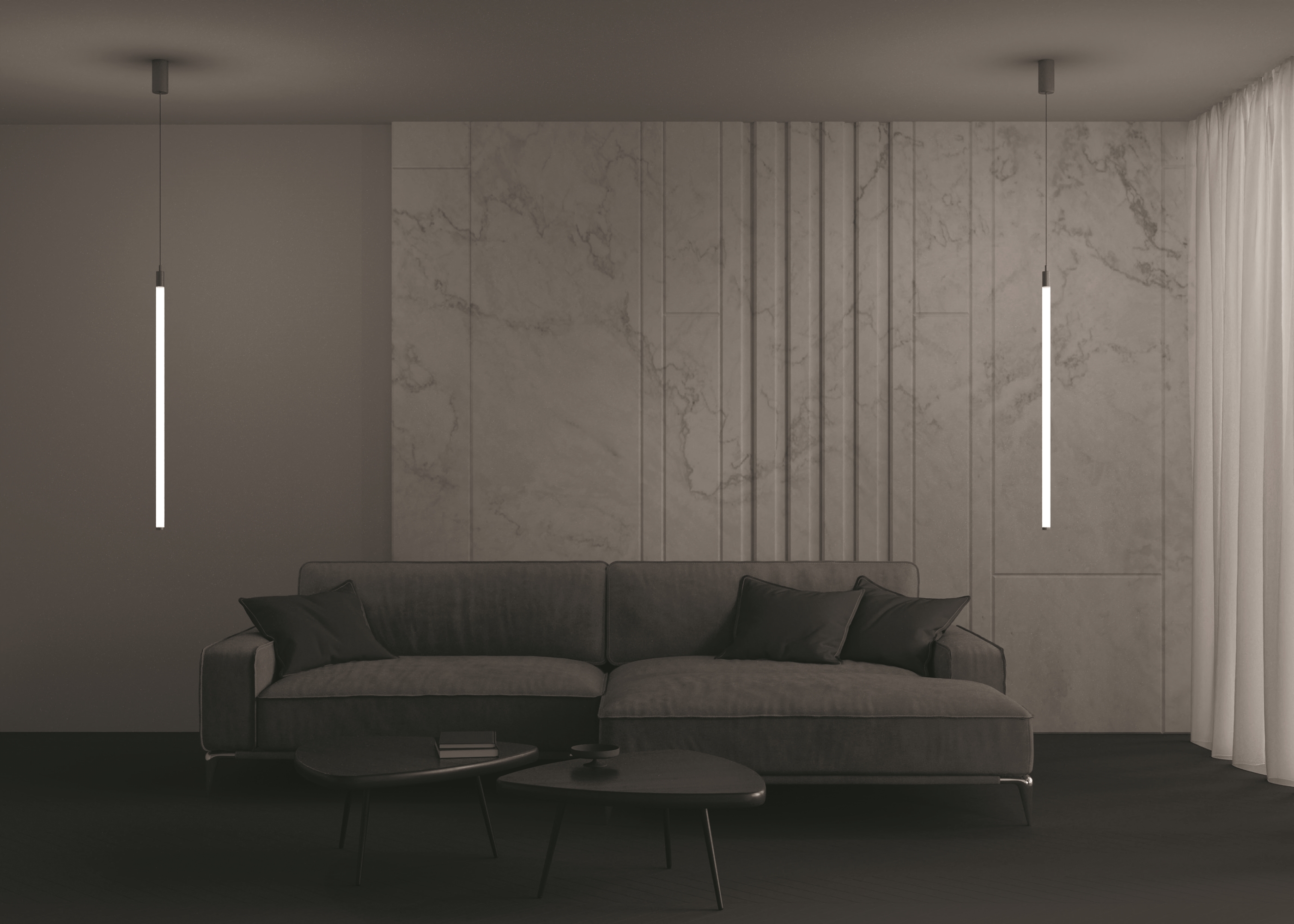 Едва уловимый взглядом светильник серии Ray буквально пронизывает пространство светом. Под корпусом из металла и акрила скрываются мощные SMD-светодиоды. Арматура выполнена из алюминия. Светильники окрашены в черный, белый и цвет матового золота. Тонкий провод добавляет конструкции легкости и регулируется по длине, позволяя расположить светильник на нужной высоте. Разная длина корпусов позволит составить индивидуальную композицию для украшения интерьера.