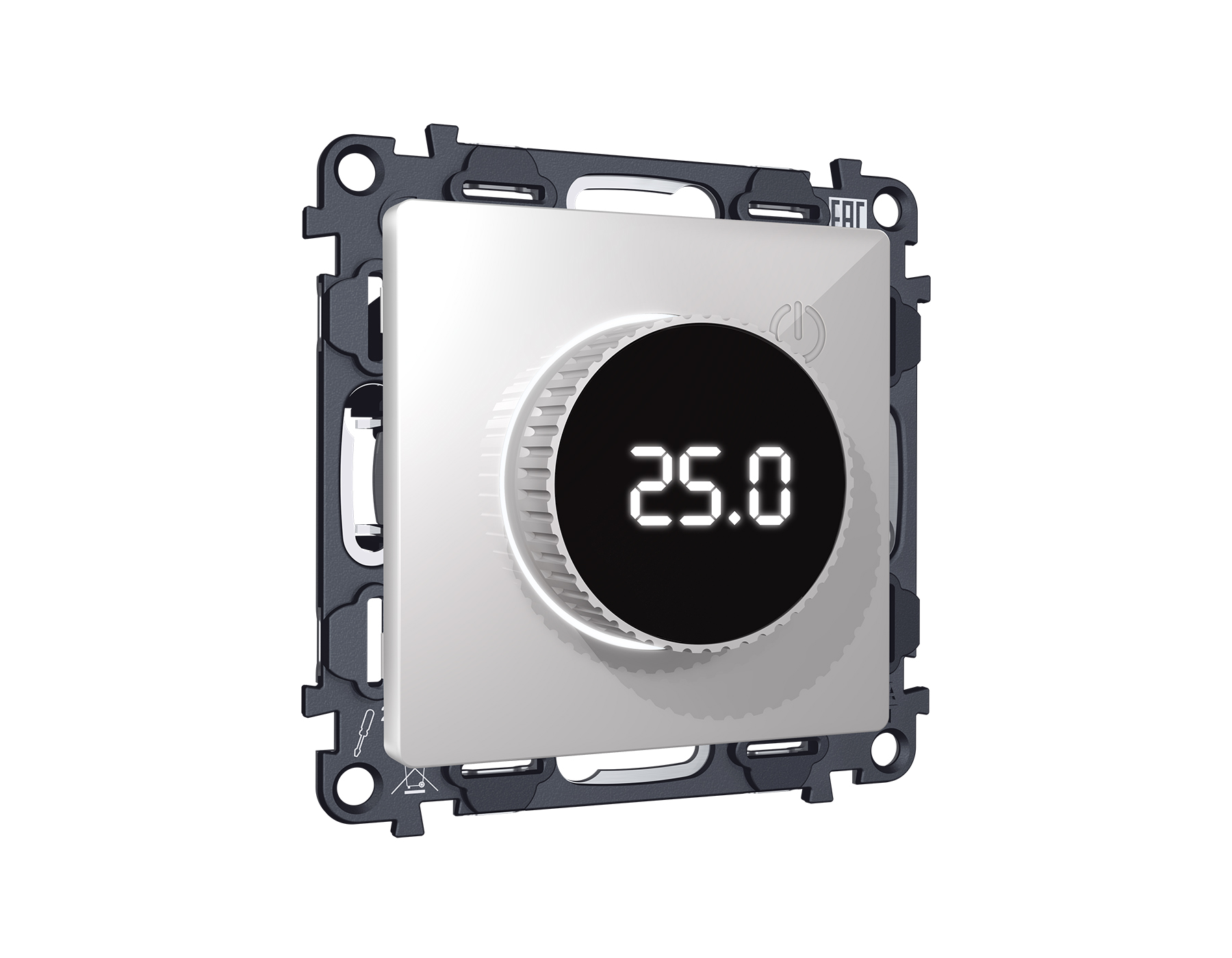 Комплект механизма терморегулятора с цифровым дисплеем с подсветкой и датчиком для теплого пола 16A-250V ALFA MA405810 Серебро глянец QUANT