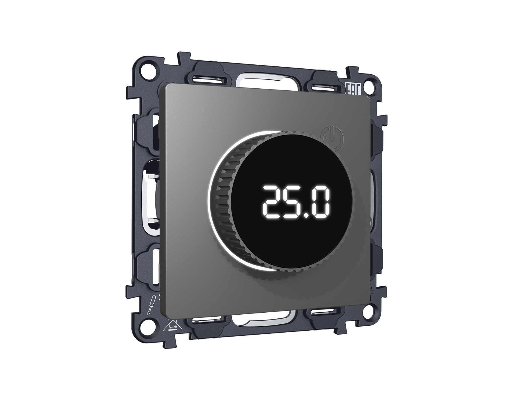 Комплект механизма терморегулятора с цифровым дисплеем с подсветкой и датчиком для теплого пола 16A-250V ALFA MA655810 Антрацит серый QUANT