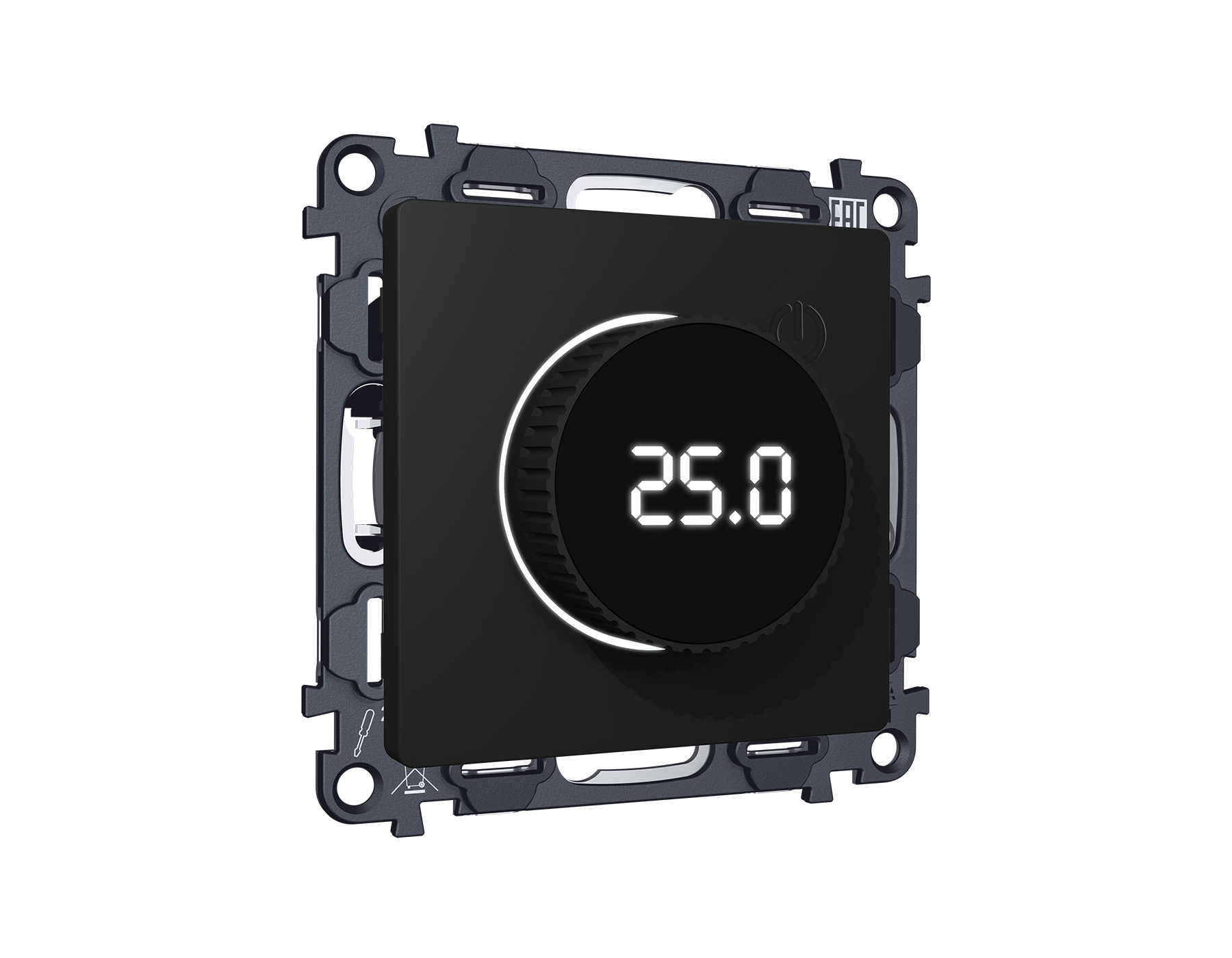 Комплект механизма терморегулятора с цифровым дисплеем с подсветкой и датчиком для теплого пола 16A-250V ALFA MA805810 Черный матовый QUANT