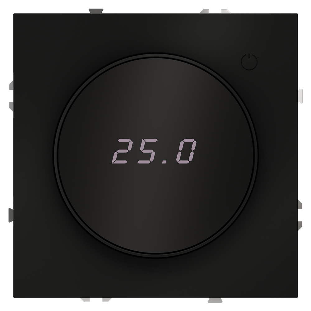 Место установки. Терморегуляторы Voltum предназначены для регулирования температуры электрического теплого пола. Актуальны как в городских квартирах, так и в загородных дачных домах без центрального отопления. Корпус. Дизайн терморегуляторов Voltum сочетается со стилем остальных электрических устройств компании. Они совместимы со всеми рамками S70. Материал внешних декоративных элементов — поликарбонат. Конструктивные особенности. Терморегулятор предназначен для работы с электрическими тёплыми полами различных типов и рассчитан на нагрузку до 3500 Вт. Устройство оснащено дисплеем, на котором отображается температура поверхности пола, обеспечивая удобный контроль системы обогрева. Устройства оснащены светодиодной индикацией режима и дисплеем, на котором отображается температура поверхности пола. Красный индикатор — «подача питания на нагревательный кабель (идет процесс нагрева)», отсутствие индикации — «заданная температура достигнута». В течение 15 минут после нагрева терморегулятор переходит в интеллектуальный «спящий режим», уменьшая яркость подсветки цифр и сокращая энергопотребление. Регулировка осуществляется вращением панели управления. Терморегулятор поставляется в комплекте с механизмом из пластиковой накладки и датчиком температуры.
