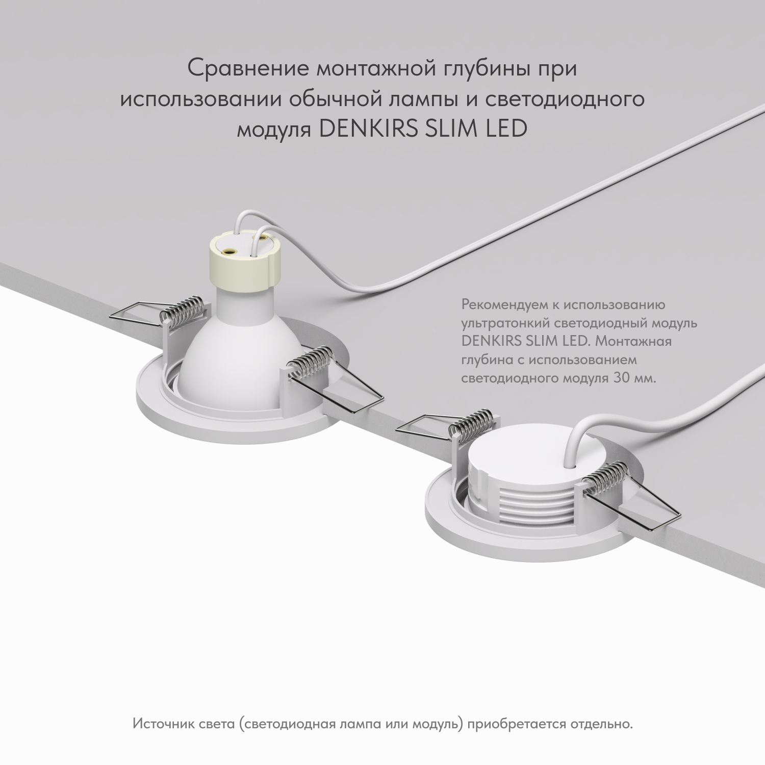 Серия компактных точечных светильников, выполненных в ультраминималистичном дизайне. Корпус светильника выполнен из алюминия методом литья под давлением и окрашен качественной порошковой краской. Лампа в комплект не входит. Для данной серии рекомендуем ультратонкие модули SLIM LED в качестве источника света, монтажная глубина всего 30 ммГлубина встраиваемой части с лампой GU10 (патрон входит в комплект): 59 мм. Высота лампы 54 мм. Глубина встраиваемой части с лампой GU5.3 (патрон приобретается отдельно): 55 мм. Высота лампы 50 мм. Глубина встраиваемой части с модулем DK3000-5W, DK3000-7W dim, DK4000-5W или DK4000-7W dim: 30мм.
