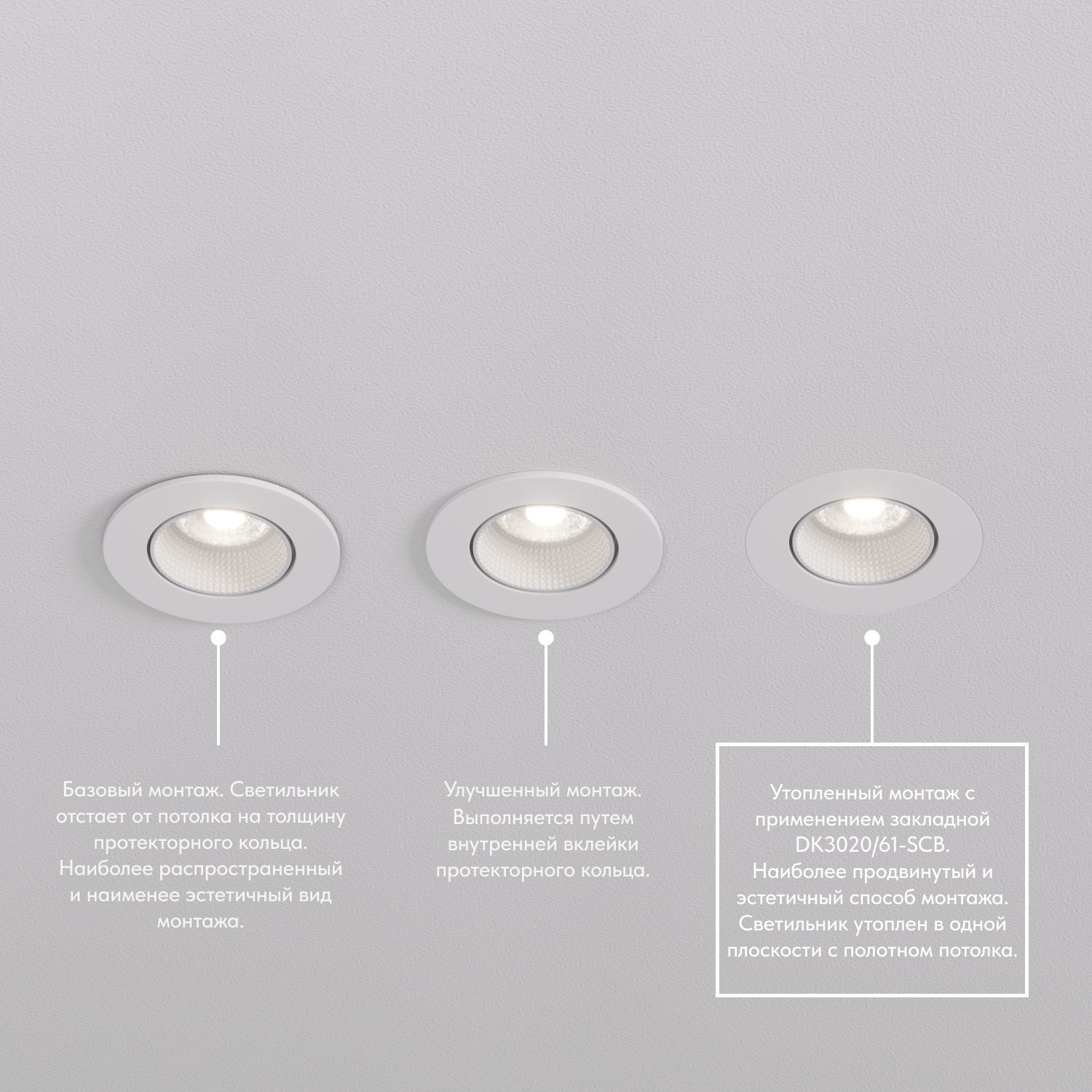 Серия встраиваемых поворотных светильников под сменную лампу из термостойкого полимера, обладающего низкой теплопроводностью. Отличительная особенность серии – рельефный рефлектор, в углублении которого располагается сменная светодиодная лампа. Серия насчитывает большое количество оригинальных цветовых сочетаний на любой вкус. Благодаря лампе, расположенной в углублении корпуса, существенно снижается слепящий эффект. Модель универсальна в своем применении. Светильники из полимера используются только со светодиодными источниками света. Лампа в комплект не входит. Для данной серии рекомендуем ультратонкие модули SLIM LED в качестве источника света, монтажная глубина всего 55 мм. При использовании светодиодной лампы с цоколем GU5.3 монтажная глубина изделия составит 78 мм. В данной серии также представлены накладные и точечные светильникиСветильник предназначен для использования со светодиодной лампой. Установка ламп другого типа не допускается