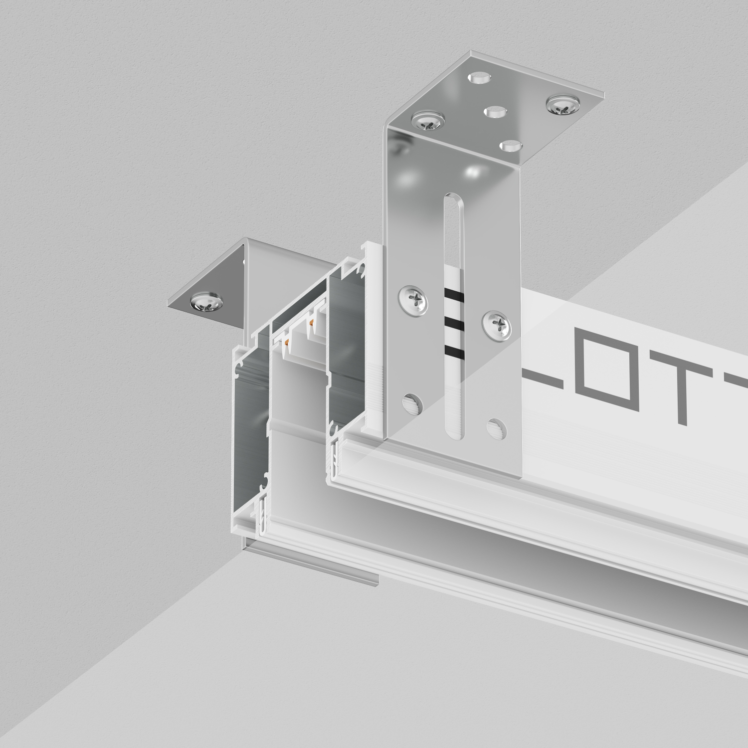 Объединенный профиль системы SLOTT с треком DENKIRS SMART. Предназначен для крепления любого типа полотна натяжного потолка. Подходит как для тканевых натяжных потолков, так и для натяжных потолков из ПВХ-пленки. Не требует приобретения отдельного трека. Профиль-трек 2 в 1. Подходит для монтажа натяжного потолка любого типа (пленочный/тканевый). Торцевые заглушки TR2017 приобретаются отдельно.Трек-профиль SLOTT for DENKIRS SMART. Оснащен патентованной демпферной системой крепления полотна SLOTT. Подходит для установки потолков любого типа: тканевых натяжных потолков, а также, натяжных потолков из ПВХ пленки. Не требует приобретения отдельного трека установки светильников. Торцевые заглушки TR2017-WH, подвод питания и соединительные элементы приобретаются отдельно. Для соединения нескольких профилей используются комплекты соединителей: TR2018-AL для прямого соединения, TR2019-AL для соединения под углом 90 градусов (отрезки профиля предварительно необходимо от торцевать под углом 45 градусов).