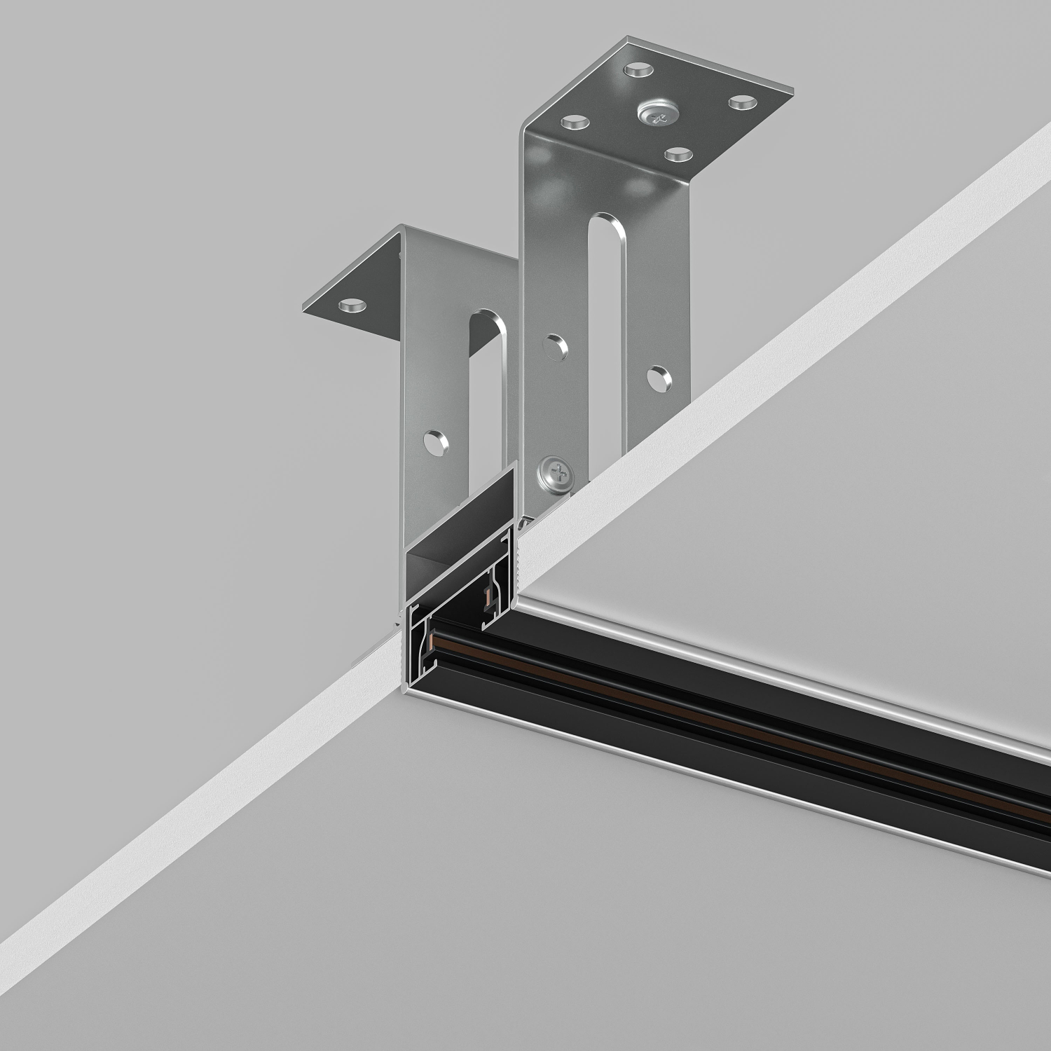 DENKIRS SOLID — однофазная трековая система, получившая широкое распространение на светотехническом рынке благодаря своей доступности, простоте и надежности. Трек системы Solid выполнен из прочного алюминиевого сплава, он не подвержен деформации и изгибам даже на больших отрезках. Это свойство особенно важно при подвесном монтаже. Система оснащена толстыми медными контактами, что гарантирует надежность и обеспечивает высокую максимально допустимую мощность. Алюминиевый профиль, предназначенный для монтажа трековой системы SOLID в фальш-потолки из гипсокартона и других твердых материалов. Имеет фланцы- упоры по всей длине, благодаря которым надежно фиксируется в материале потолка. Является лучшим решением при встраиваемом способе монтажа системы в потолки из твердых материалов.Предназначен для установки однофазного шинопровода в гипсокартонный потолок. Цена указана за 2 метра. Продается кратно 2 метрам. Срок гарантии 3 года.