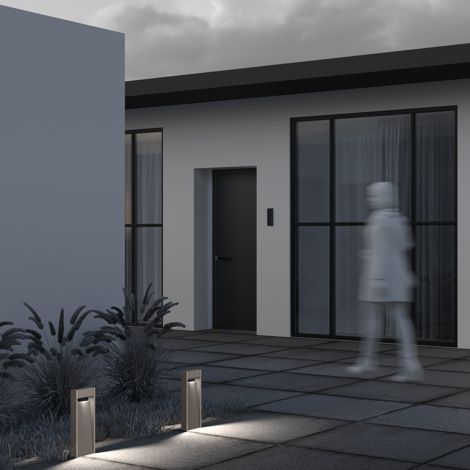 Материал корпуса - алюминий, цвет - графит. Два варианта декоративной поверхности корпуса - рифленый металл и имитация дерева. LED-источник света, цветовая температура - 3000К. Высокая степень защиты - IP65.