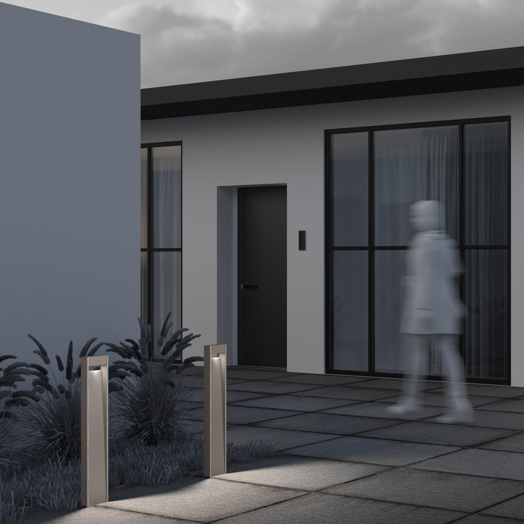 Материал корпуса - алюминий, цвет - графит. Два варианта декоративной поверхности корпуса - рифленый металл и имитация дерева. LED-источник света, цветовая температура - 3000К. Высокая степень защиты - IP65.