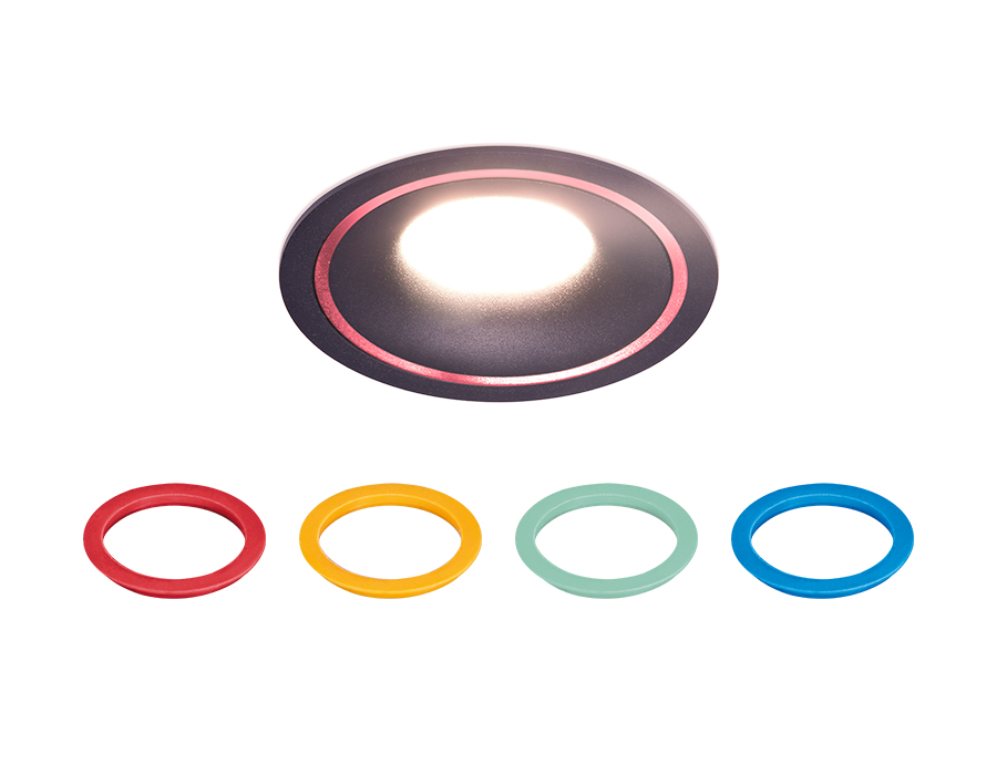 Встраиваемый точечный светильник, 4 цветных сменных вставки (лампа не в комплекте)