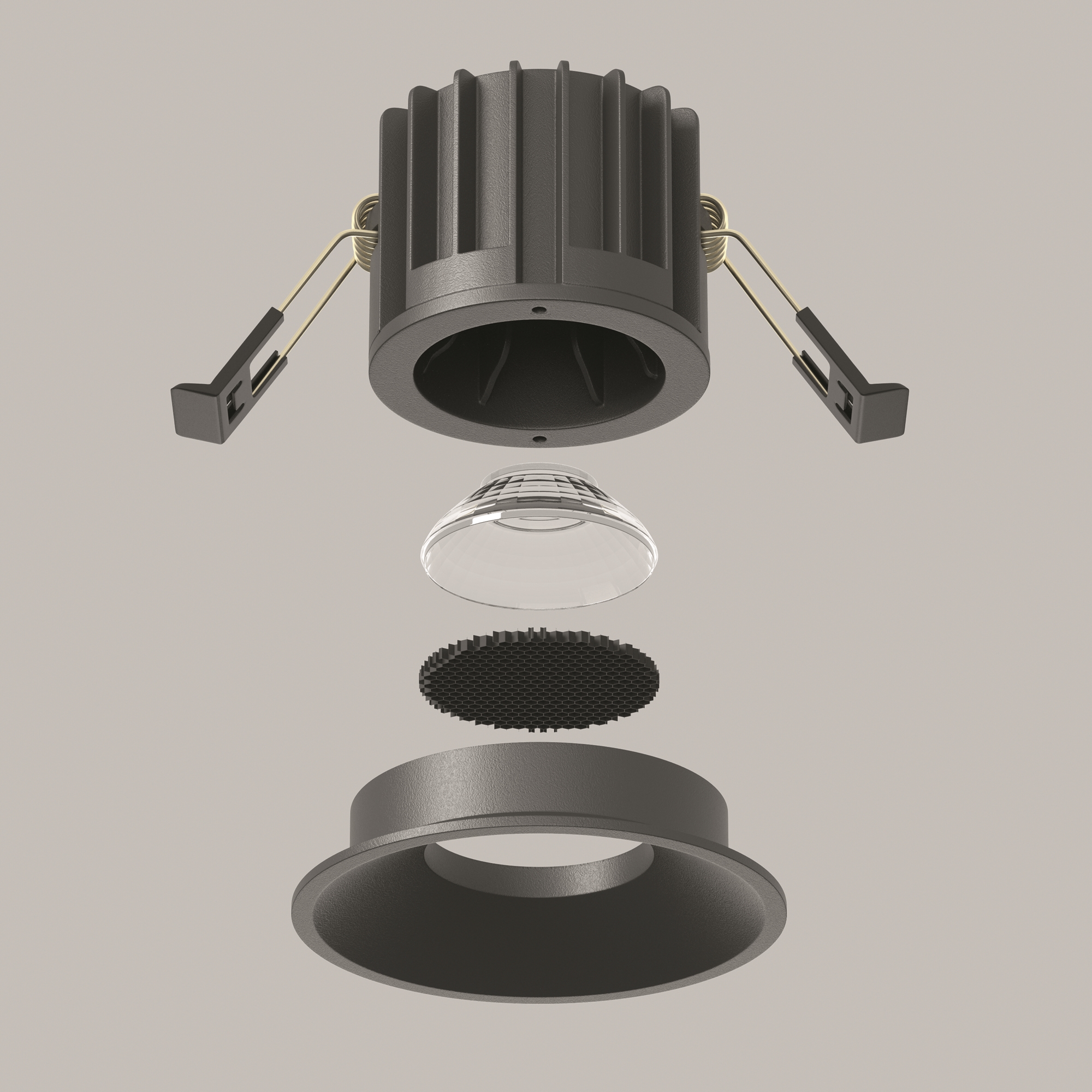 Встраиваемые светодиодные светильники серии Round отличное решение для современных интерьеров. Широкий модельный ряд представлен в двух варианта корпуса: встраиваемые светильники с узкой рамкой и встраиваемые светильники без видимой рамки. Трендовые цвета белый, черный и латунь в двух актуальных цветовых температурах 3000, и 4000К представлены в двух мощностях 7 и 12Вт. Утопленный источник света с высоким коэффициентом цветопередачи обеспечивает визуальный комфорт, так же в ассортименте для светильников есть дополнительные антибликовые фильтры. Компактные размеры встройки делают эти модели совершенным источником света для современного интерьера. - Широкий модельный ряд 7, 12Вт, 3 трендовых цвета, две цветовые температуры, - В серии есть светильники с креплением, предназначенным для безрамочного монтажа под шпатлевку. - Высокий индекс цветопередачи позволяет максимально раскрыть цвета интерьера. CRI>90. - Утопленный источник света для визуального комфорта. - Возможность дополнить антибликовыми решетками из ассортимента, которые приобретаются отдельно. - Компактные размеры встройки.