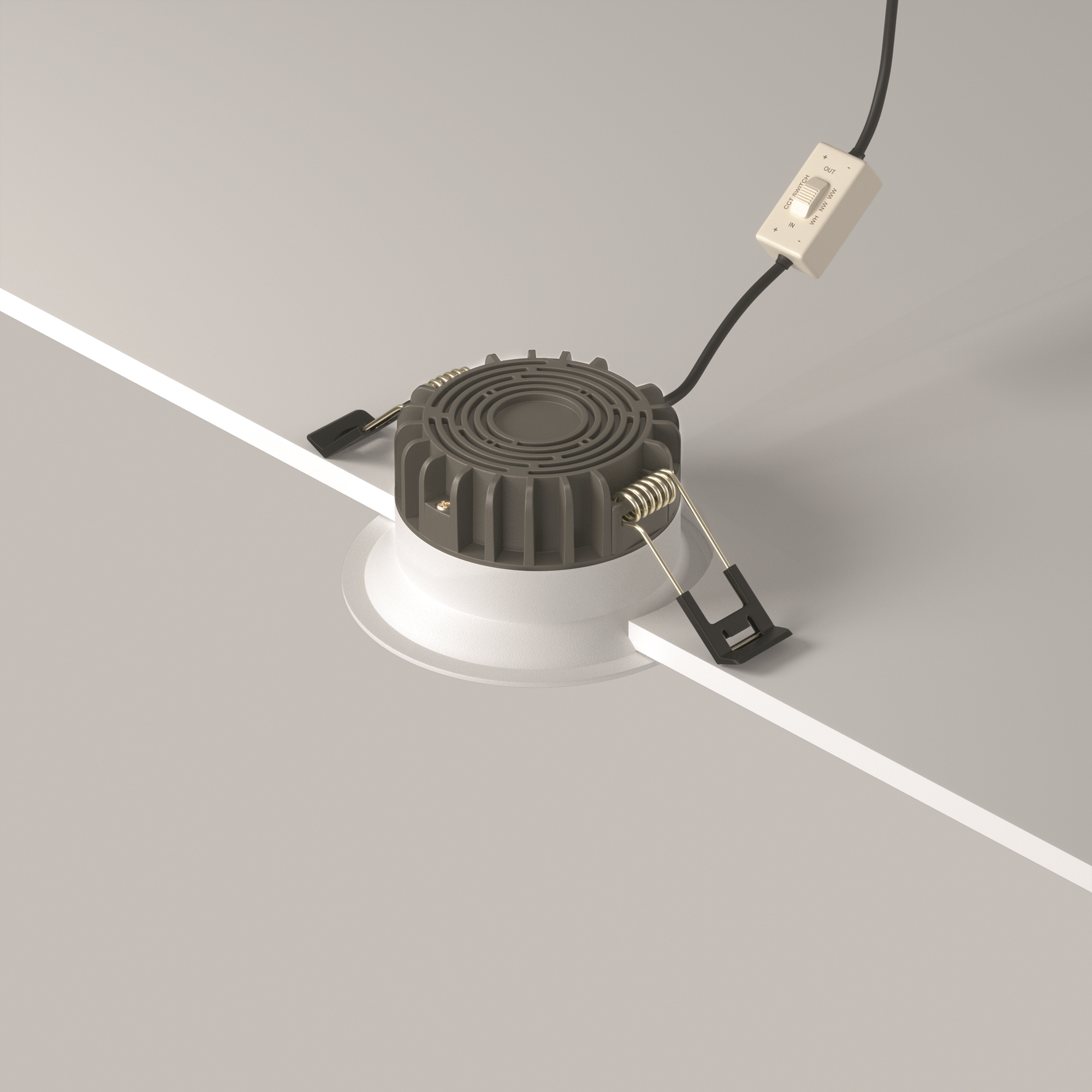 Материал арматуры - алюминий и пластик. Организация основного освещения в интерьере. Высокий коэффициент цветопередачи >90. Качественное отображение цветов. Утопленный матовый рассеиватель. Переключатель цветовой температуры. Повышенная степень пылевлагозащиты IP 44.