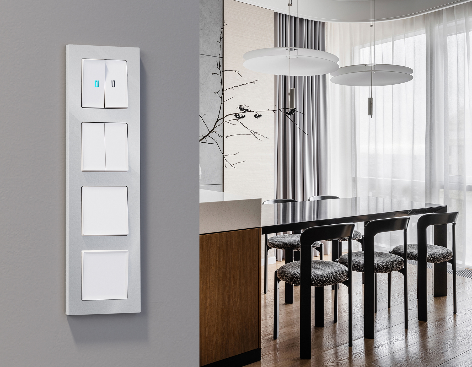 Многогранный ассортимент Ambrella Volt включает в себя механизмы, лицевые панели и рамки, а также комплекты, доступные в различных цветовых решениях. Продукция представлена в модульном исполнении, что позволяет гибко настраивать внешнийвид и функциональность. Вам будет легко заменить лицевую панель, рамку или механизм, найдя идеальное сочетание цветов.