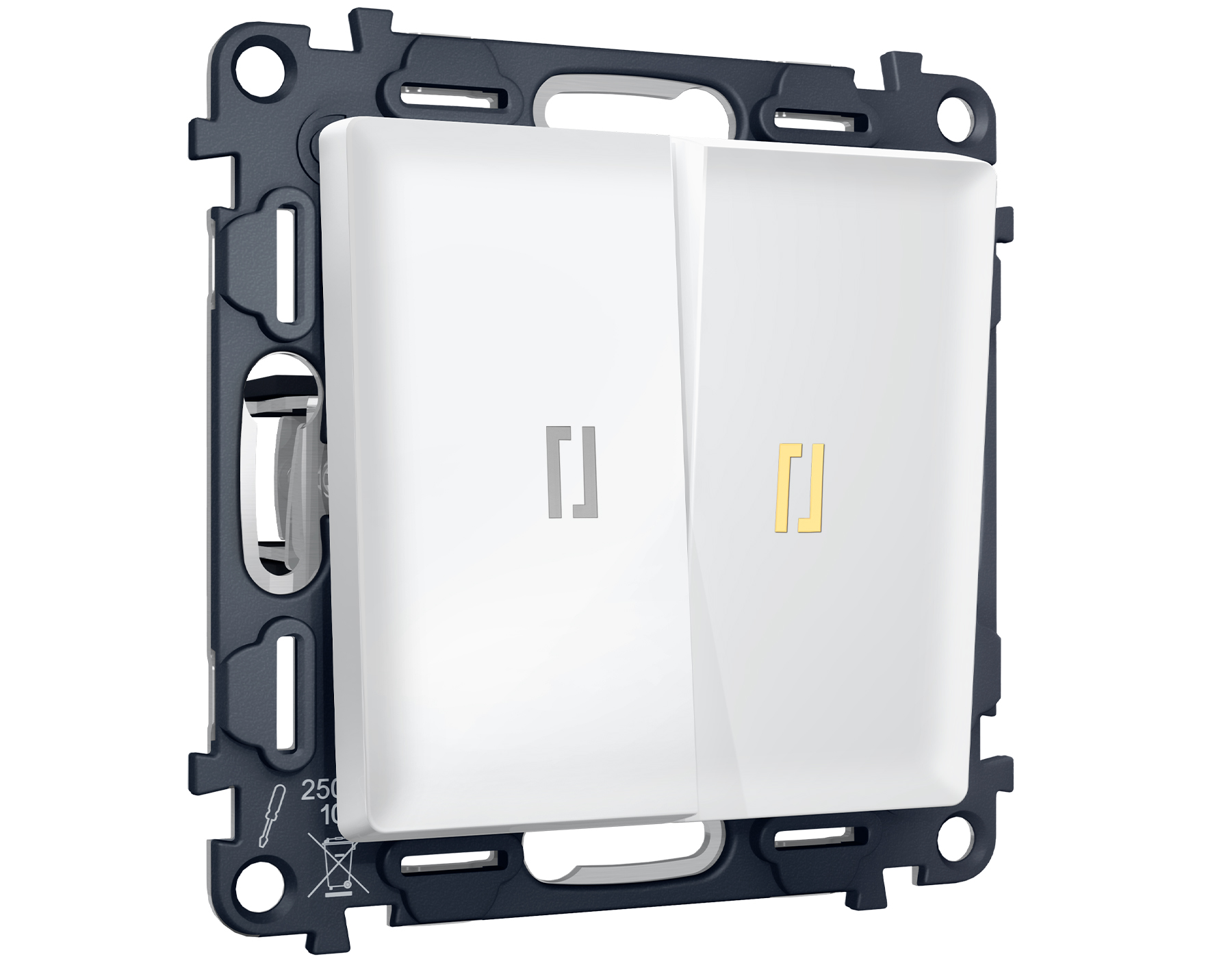 Комплект механизма 2-клавишного выключателя с подсветкой 3200K ALFA MA124010 Белый матовый QUANT