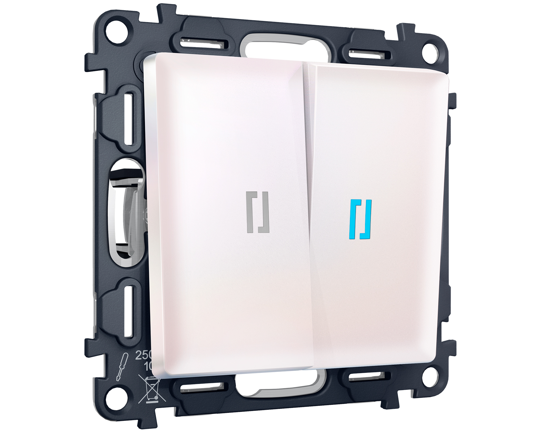 Комплект механизма 2-клавишного выключателя с подсветкой 10000K ALFA MA204020 Жемчуг QUANT