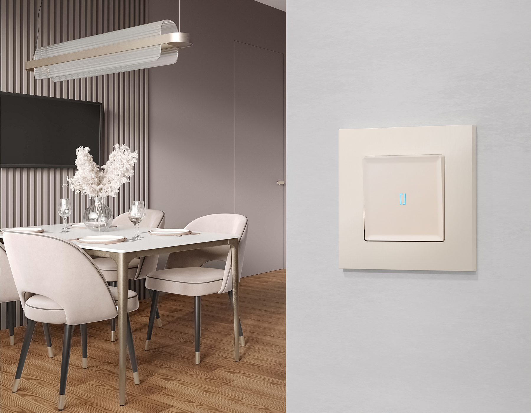 Комплект механизма 1-клавишного выключателя с подсветкой 10000K ALFA MA322020 Бежевый матовый QUANT