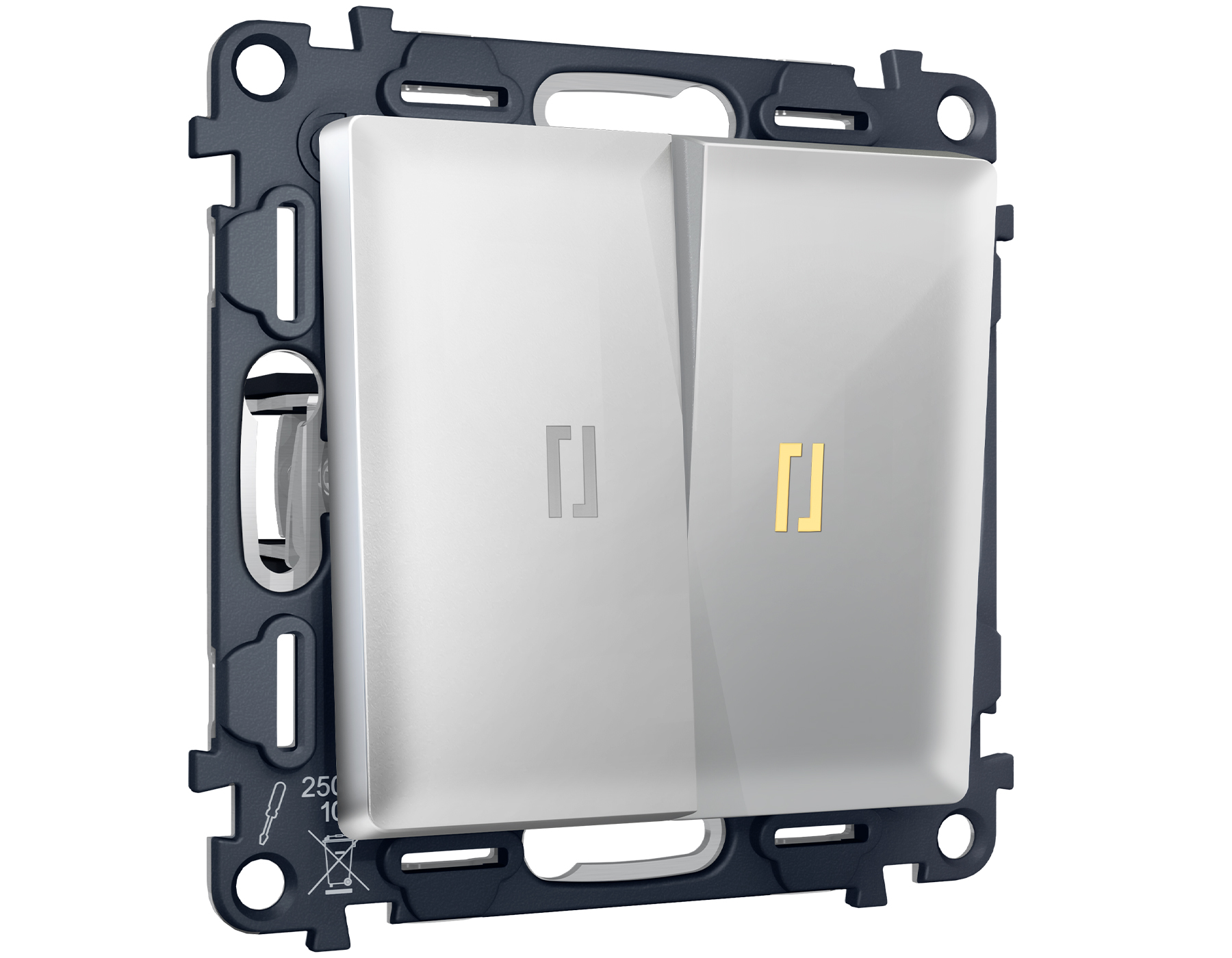 Комплект механизма 2-клавишного выключателя с подсветкой 3200K ALFA MA404010 Серебро глянец QUANT
