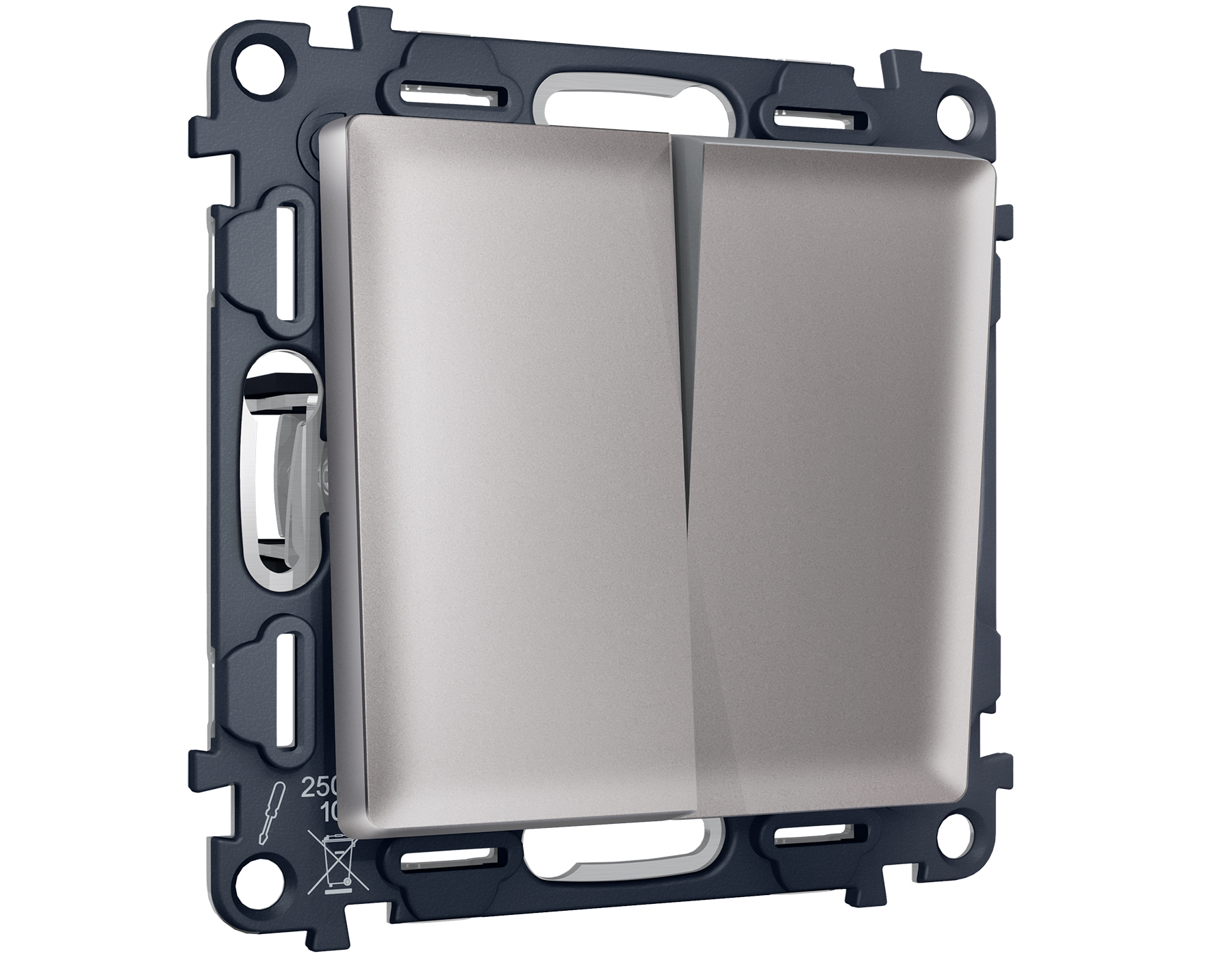 Комплект механизма 2-клавишного выключателя ALFA MA503010 Сталь матовый QUANT