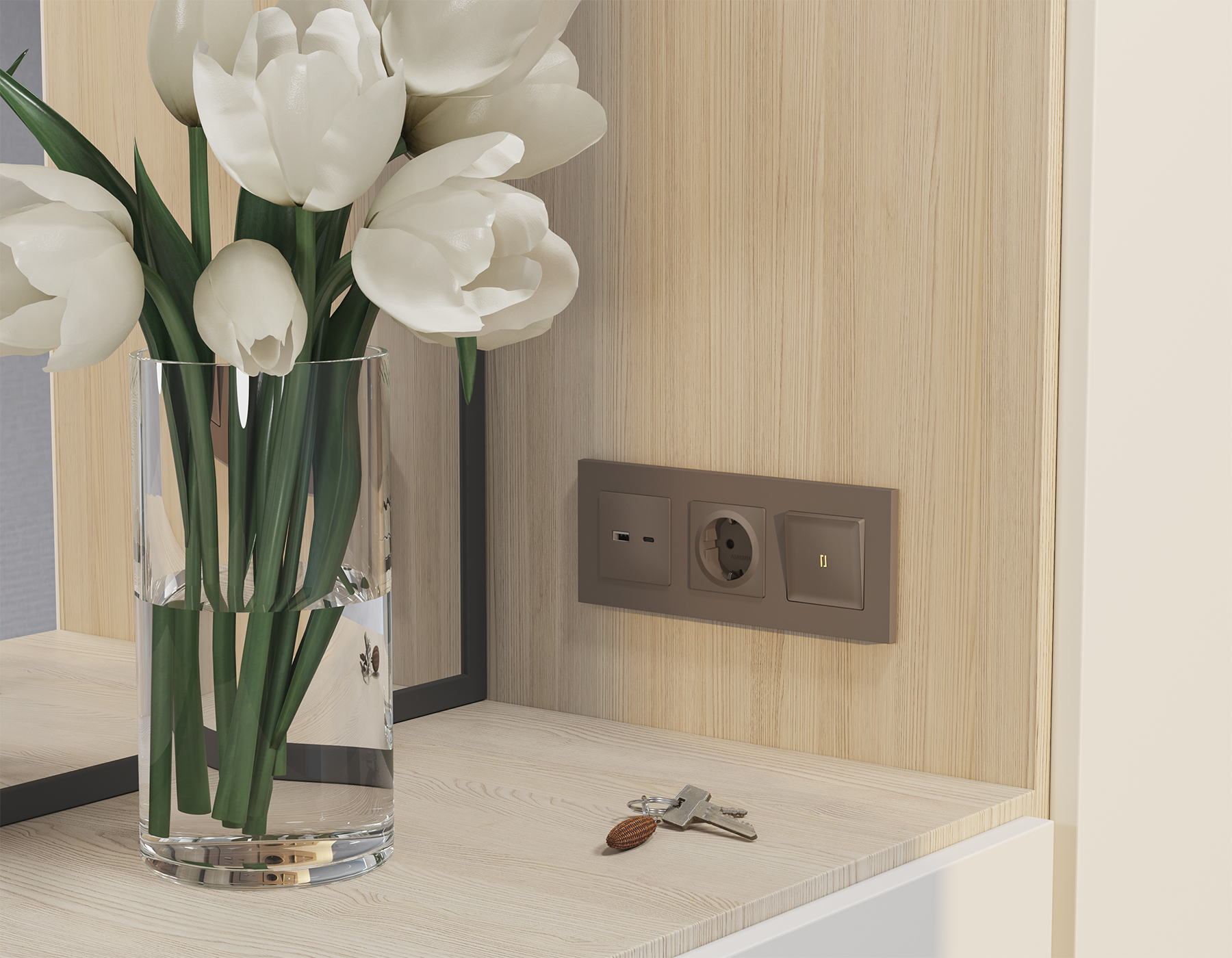 Многогранный ассортимент Ambrella Volt включает в себя механизмы, лицевые панели и рамки, а также комплекты, доступные в различных цветовых решениях. Продукция представлена в модульном исполнении, что позволяет гибко настраивать внешнийвид и функциональность. Вам будет легко заменить лицевую панель, рамку или механизм, найдя идеальное сочетание цветов.