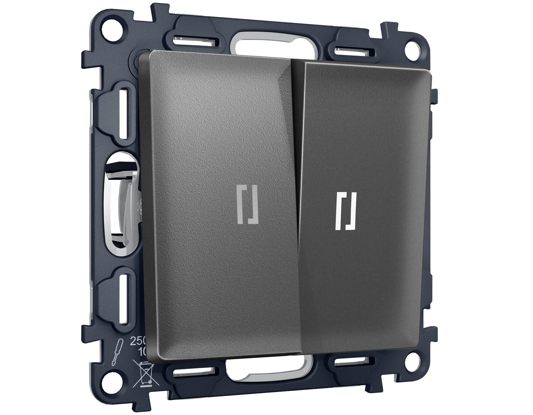 Комплект механизма 2-клавишного выключателя с подсветкой 5600K ALFA MA654015 Антрацит серый QUANT