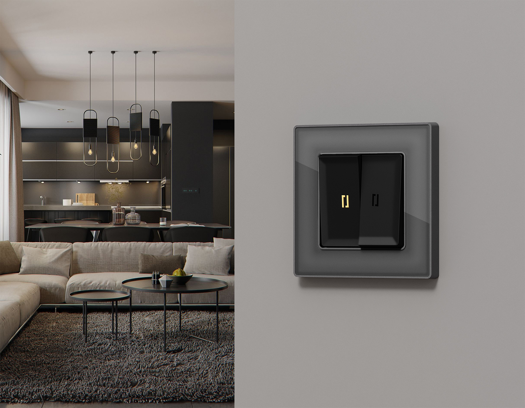 Комплект механизма 2-клавишного выключателя с подсветкой 3200K ALFA MA804010 Черный матовый QUANT
