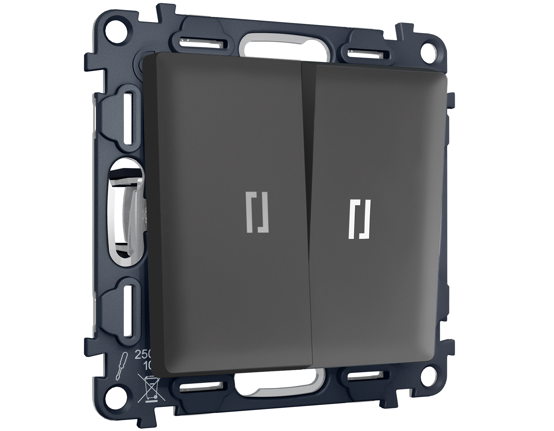 Комплект механизма 2-клавишного выключателя с подсветкой 5600K ALFA MA904015 Графит мягкое касание QUANT