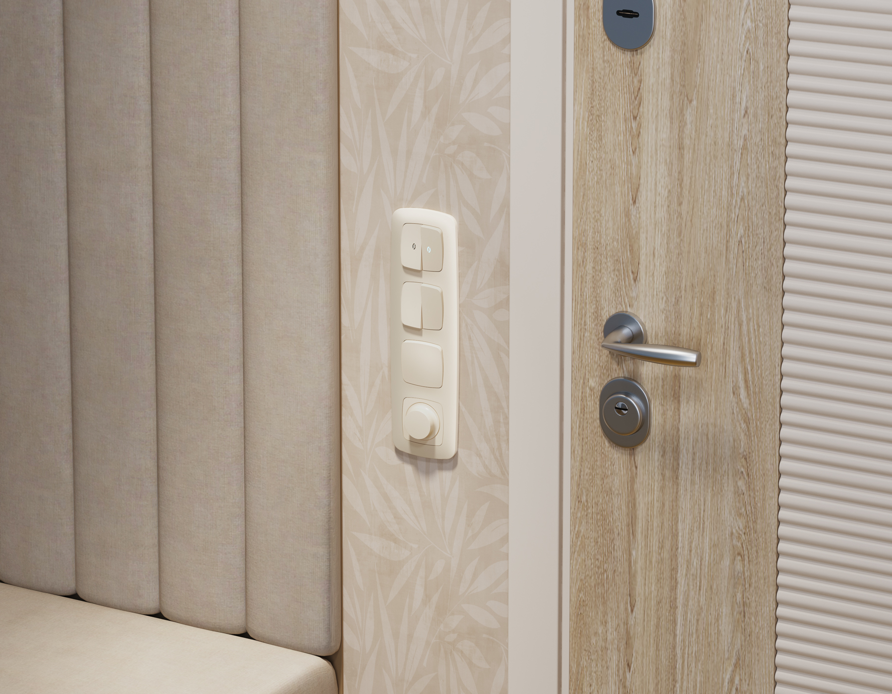 Комплект механизма 2-клавишного выключателя с подсветкой 5600K OMEGA MO324015 Бежевый матовый QUANT